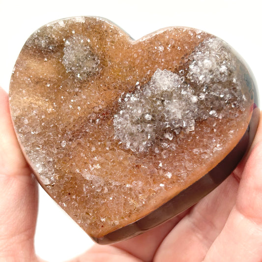 #14 Pink, Lilac & Orange Sugar Amethyst Medium Heart With Jasper & Agate From Uruguay 🇺🇾