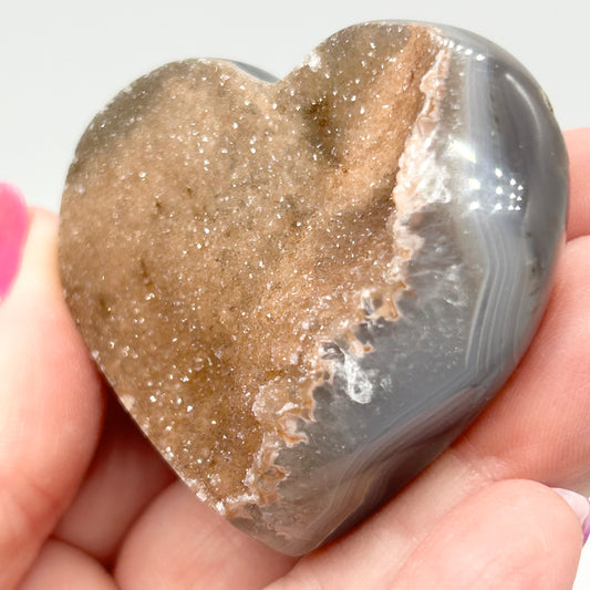 #13 Pink & Red Sugar Amethyst Large Heart With Grey Agate From Uruguay 🇺🇾