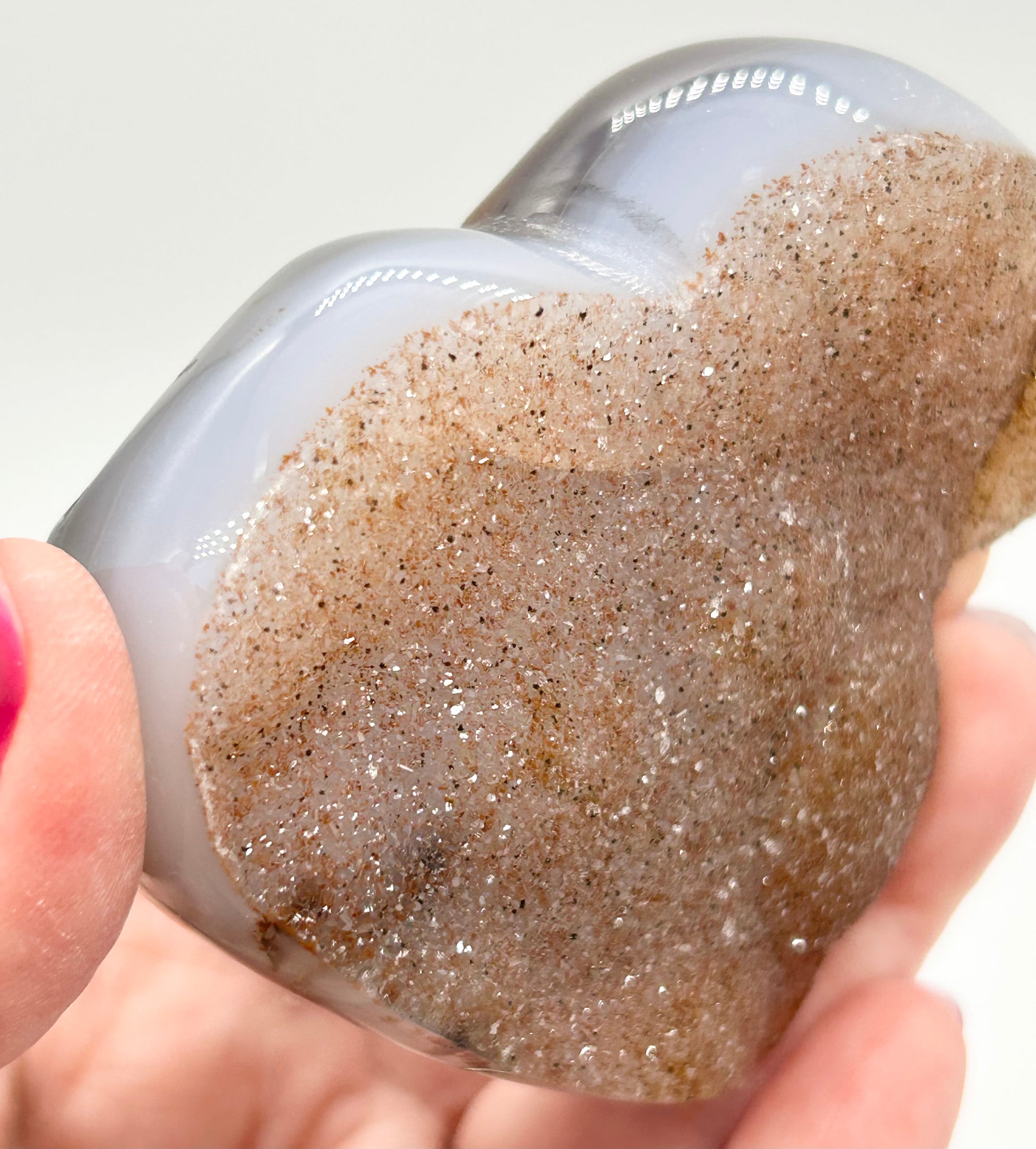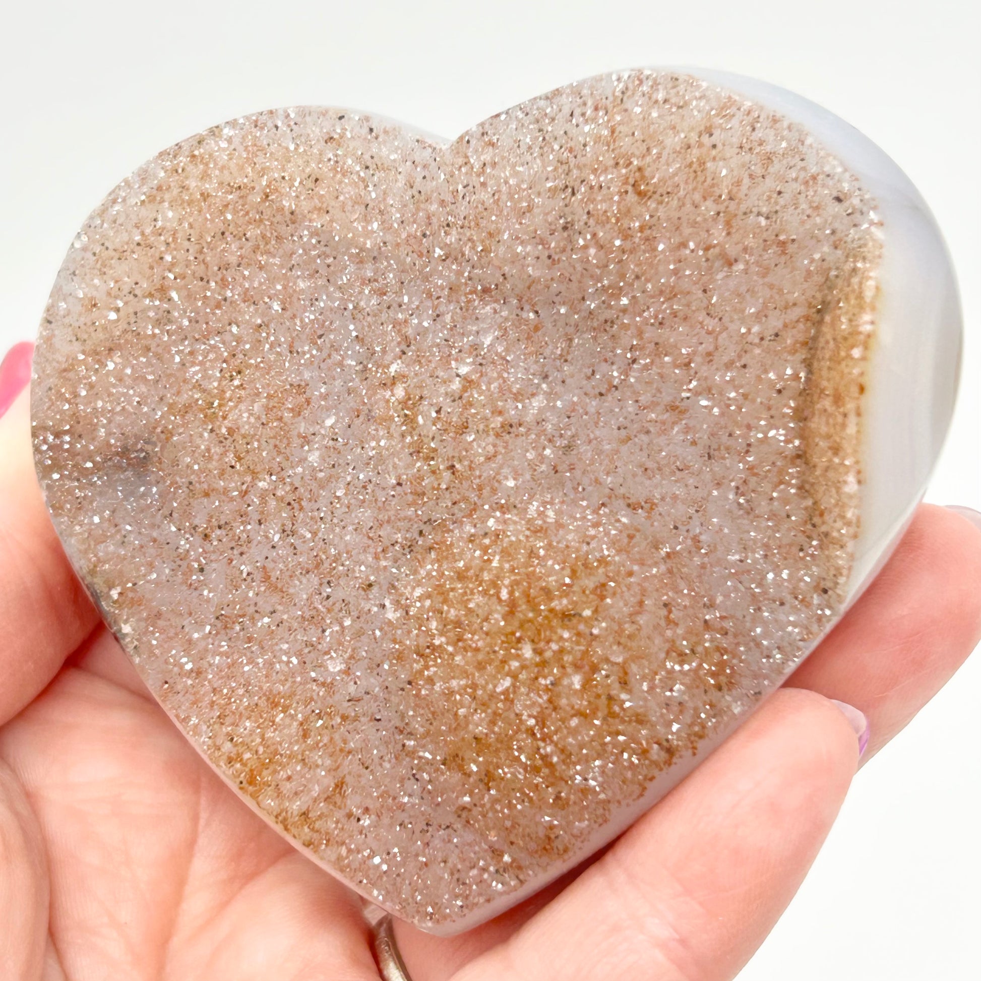 These hearts have the most beautiful rainbow of colours and all have a sparkly sugar Amethyst/ Quartz. These hearts are top quality and all totally individual.