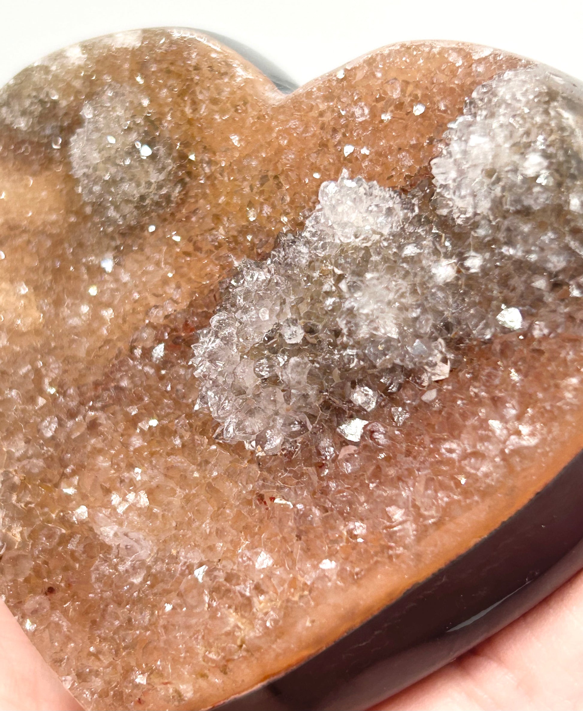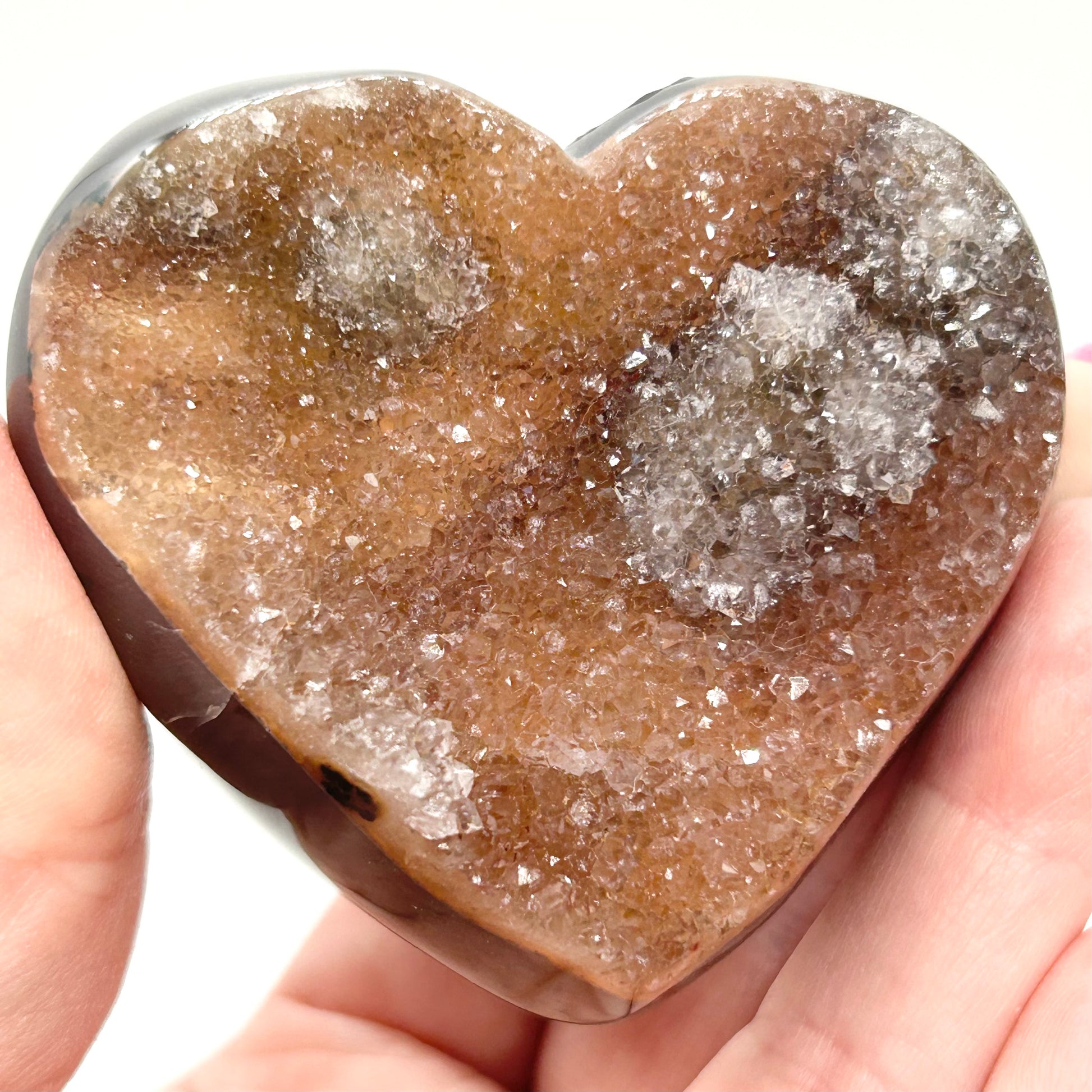 These hearts have the most beautiful rainbow of colours and all have a sparkly sugar Amethyst/ Quartz. These hearts are top quality and all totally individual.