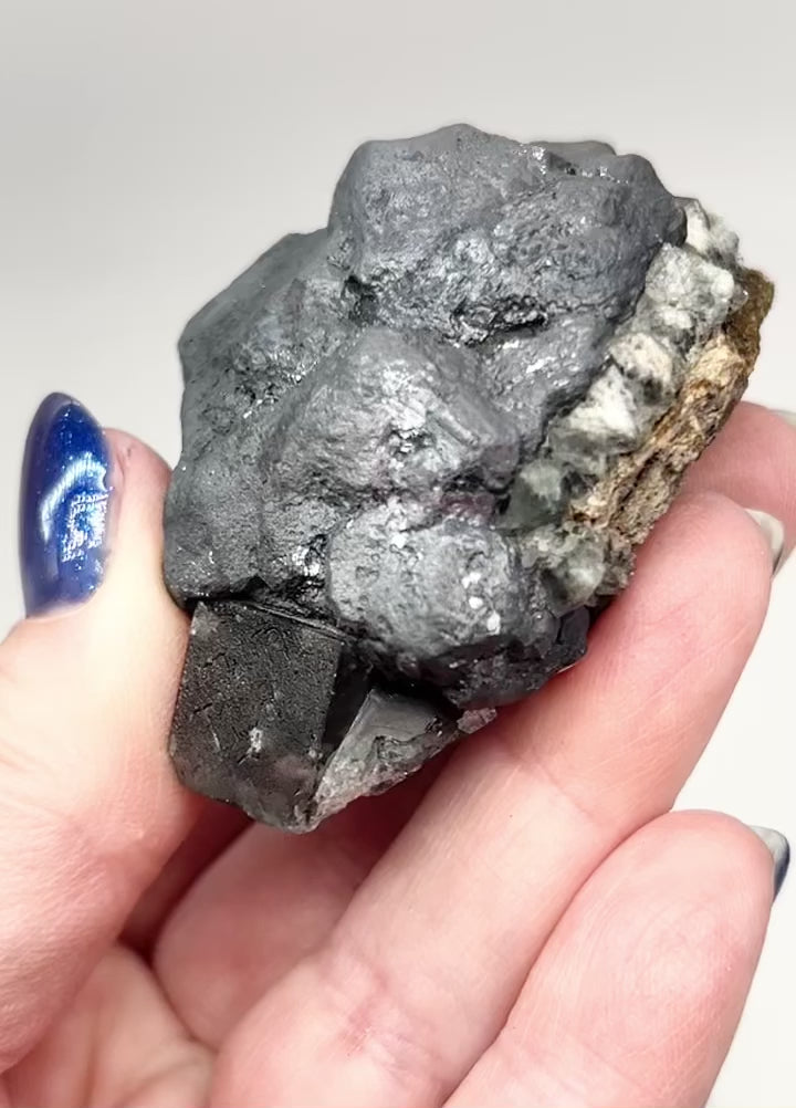 This piece is unique with a heavy weight piece of Galena and one cube of Yum Yum Fluorite.