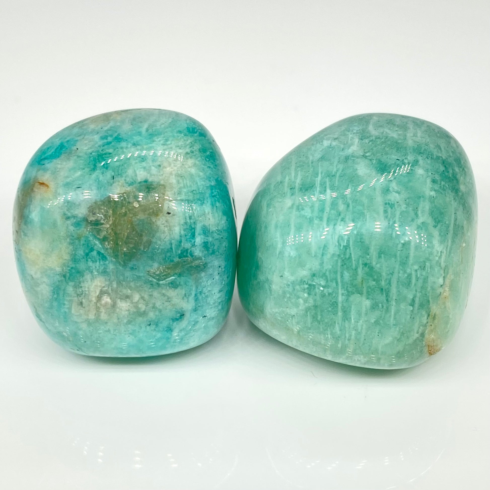 This material is named after the Amazon river, strangely so as it has never been mined there. These tumbles are from Brazil, bringing a beautiful colour and they are shiny, just like the best Amazonite displays.