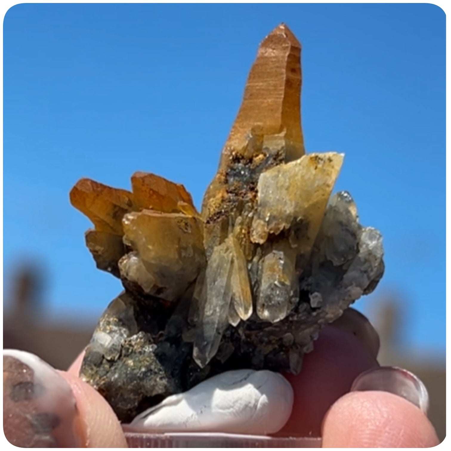 These are a small pocket, recently mined of beautiful Black Vera Cruz Quartz specimens, with these having natural iridescence from hematite. This pocket was very small and so these specimens re limited.