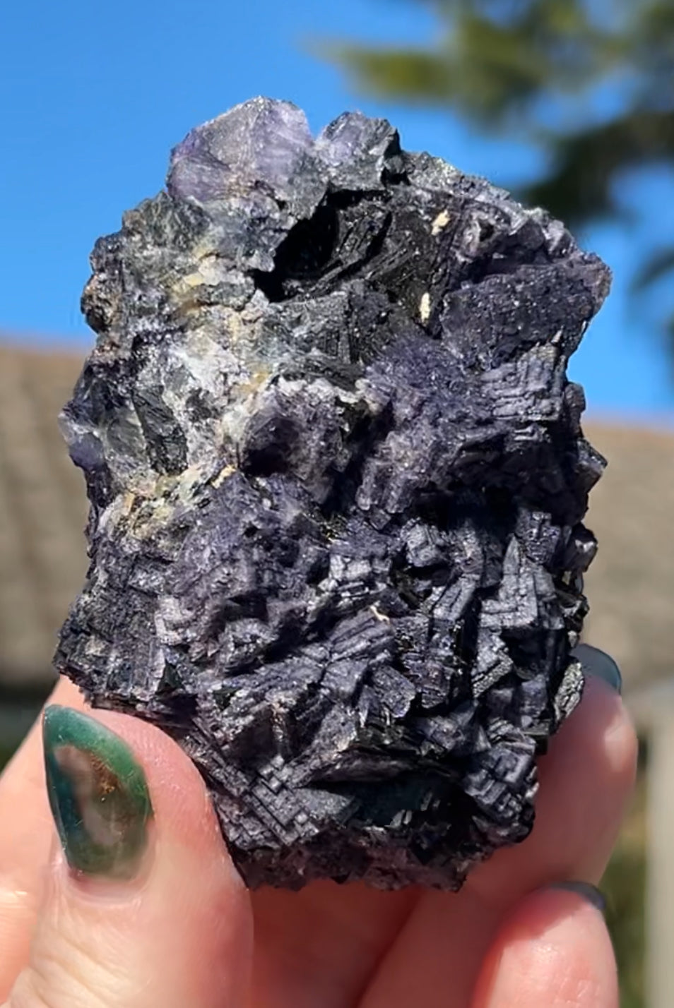 This specimen has a secondary growth of Blue Fluorite over the top of the Black Fluorite.
