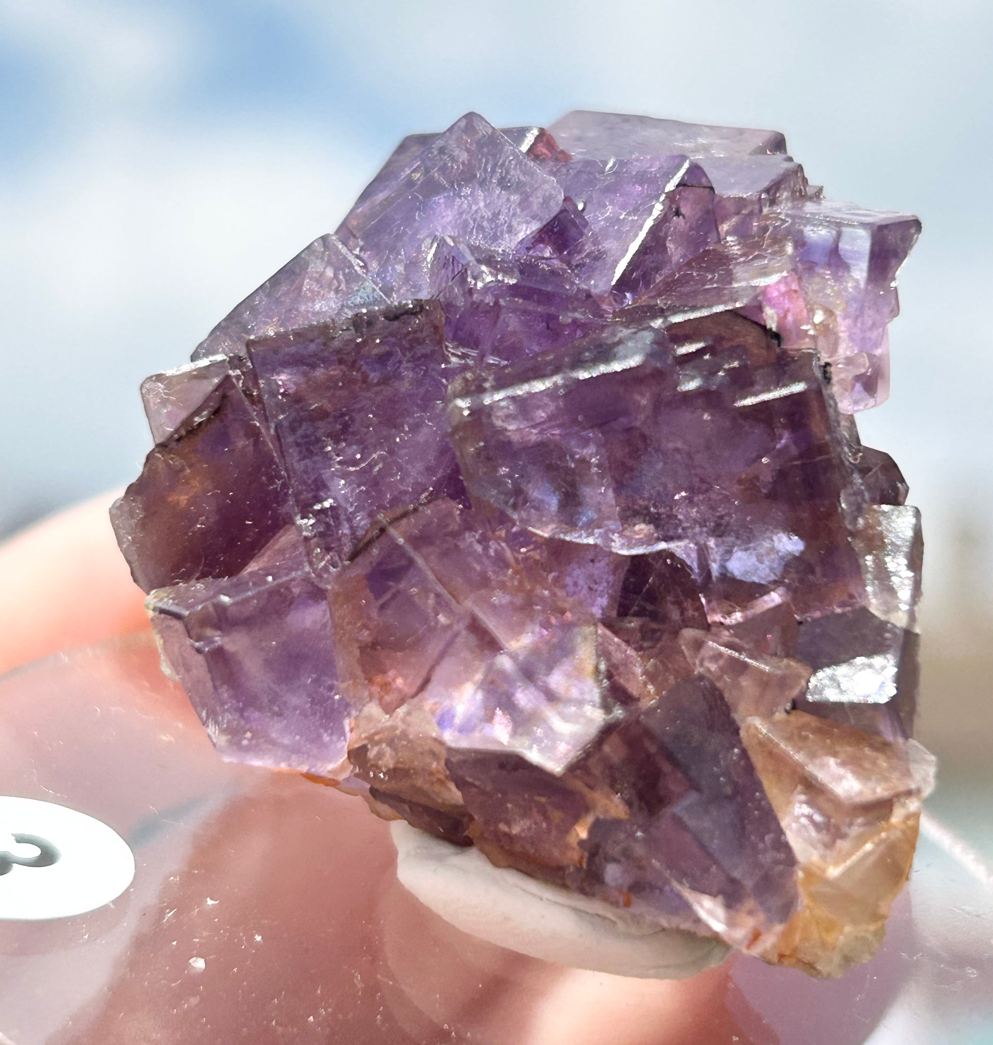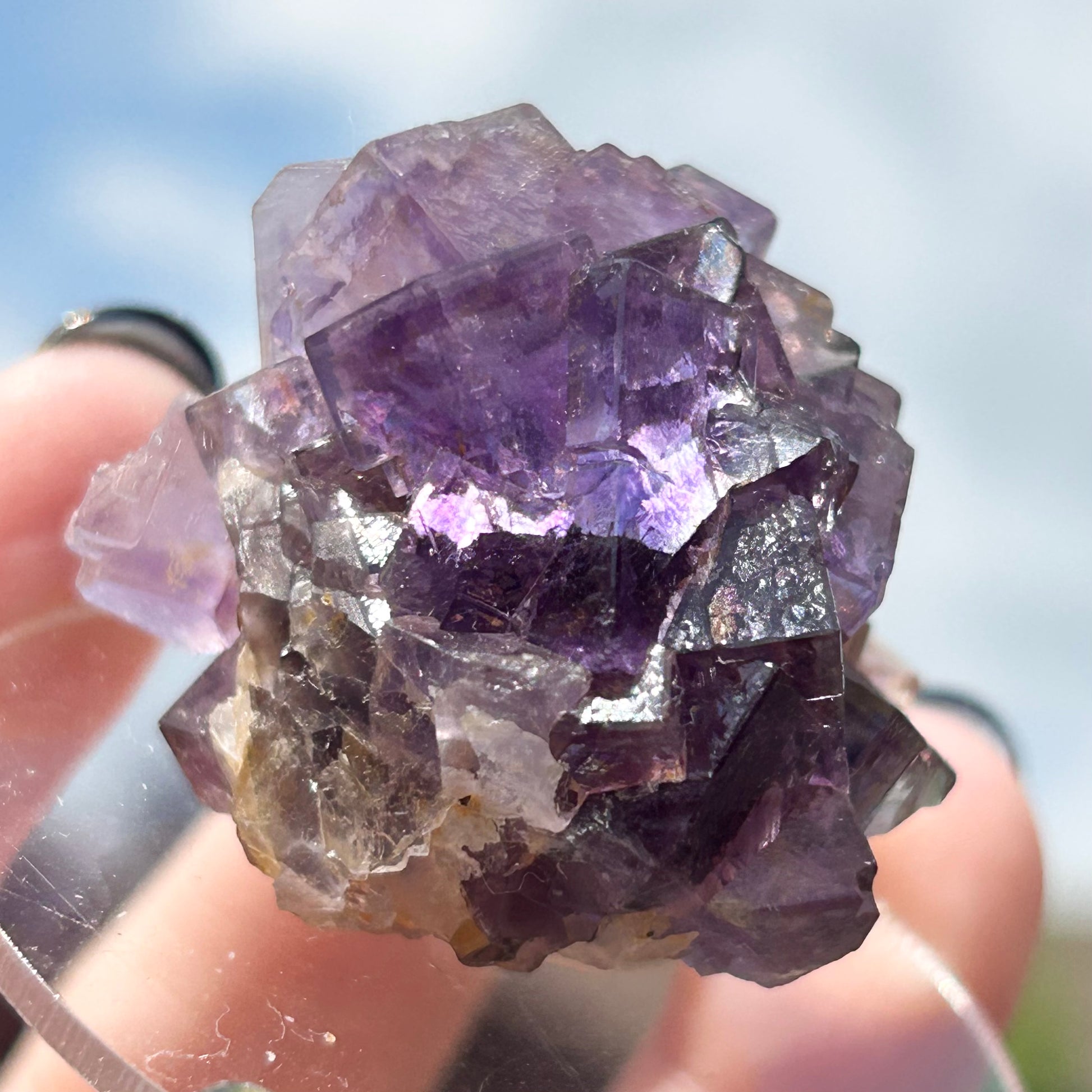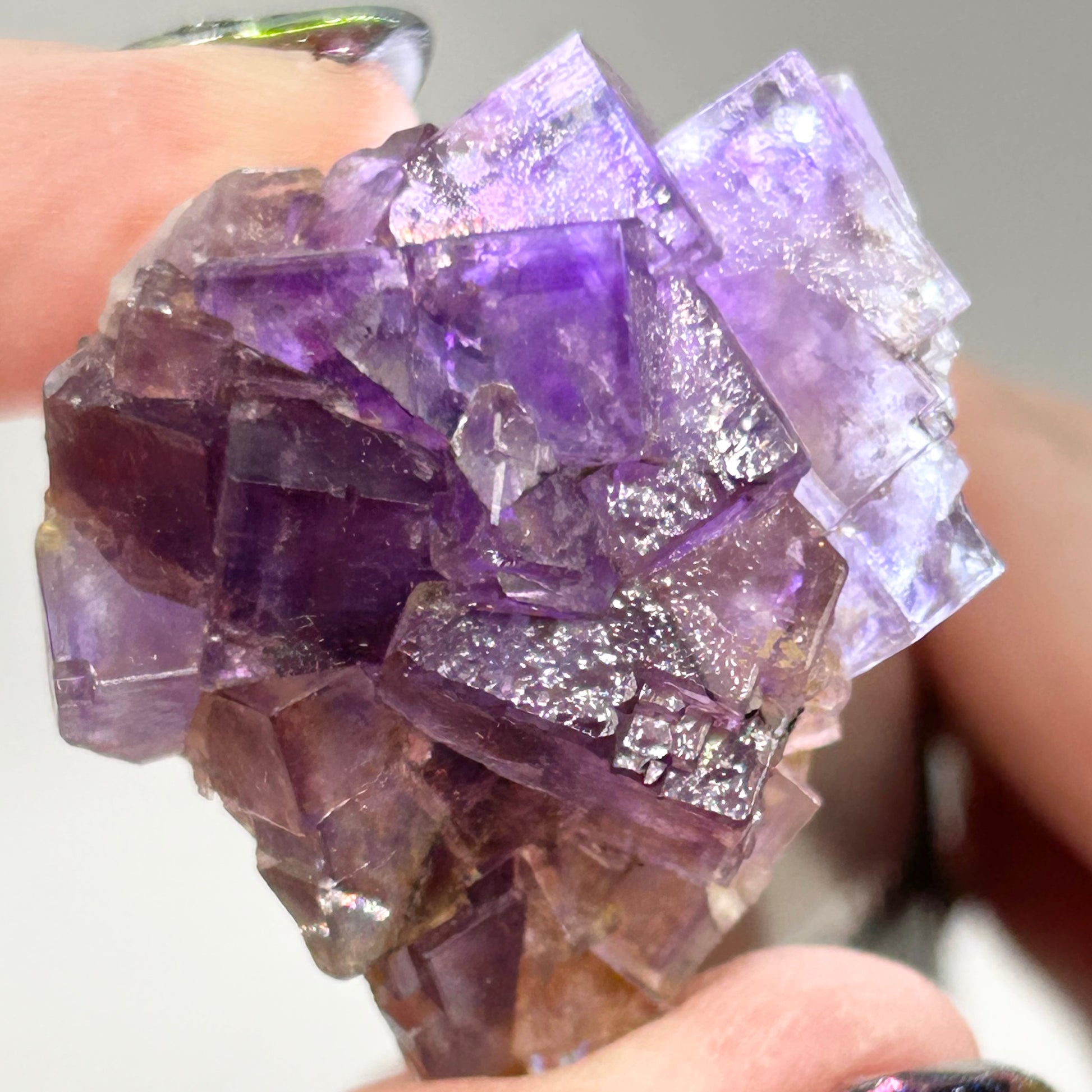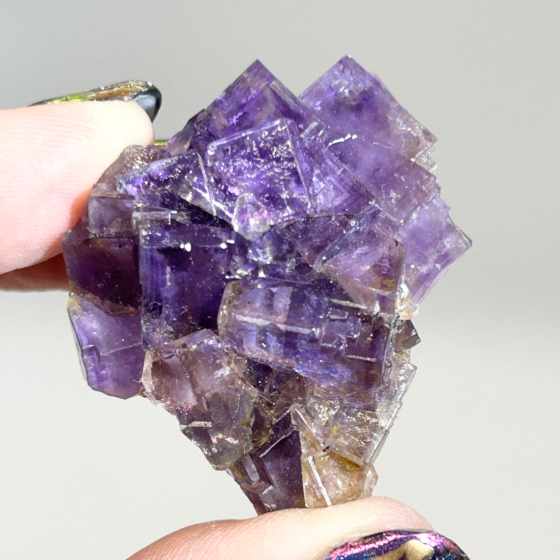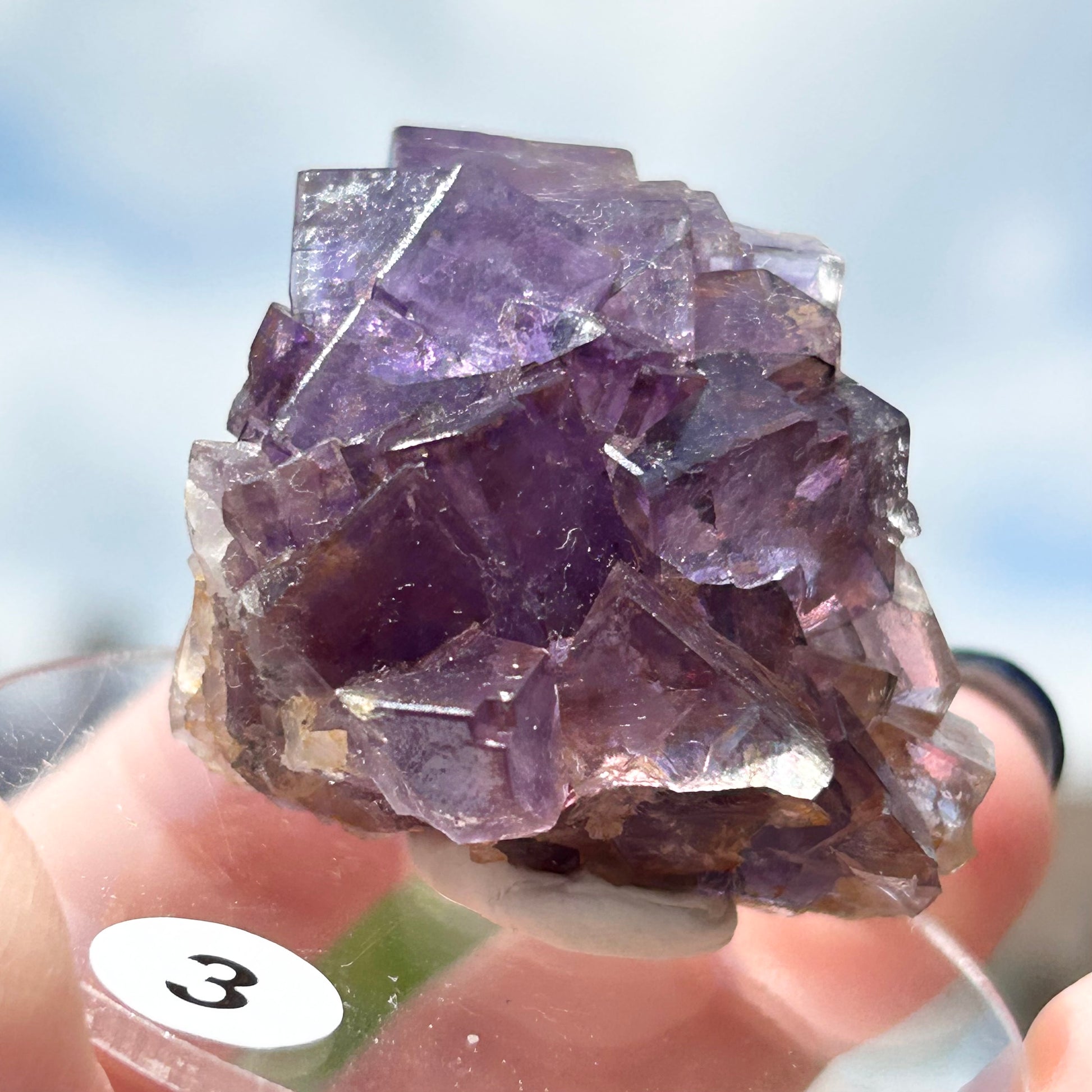 These specimens contain blue and purple zoning, with a beautiful stepped growth pattern.