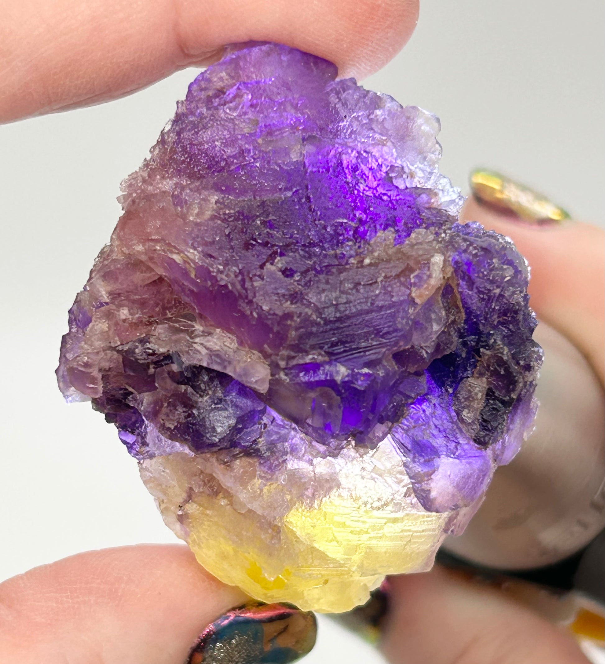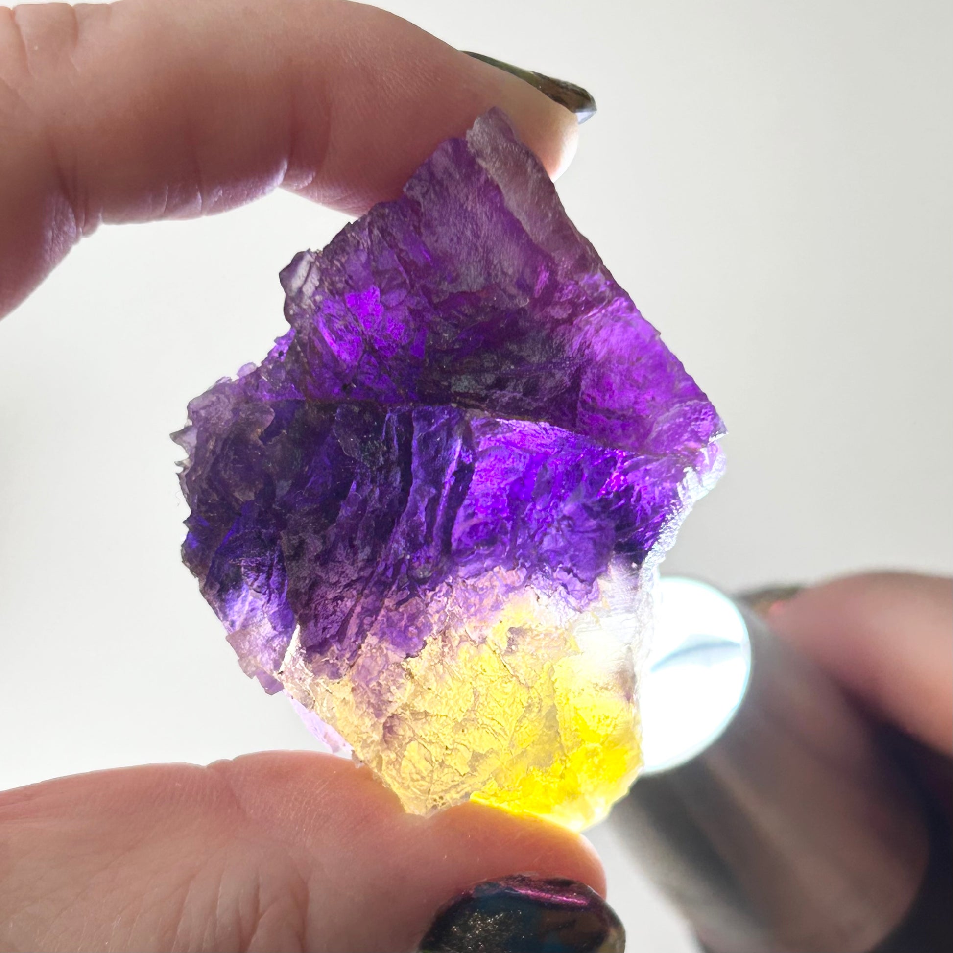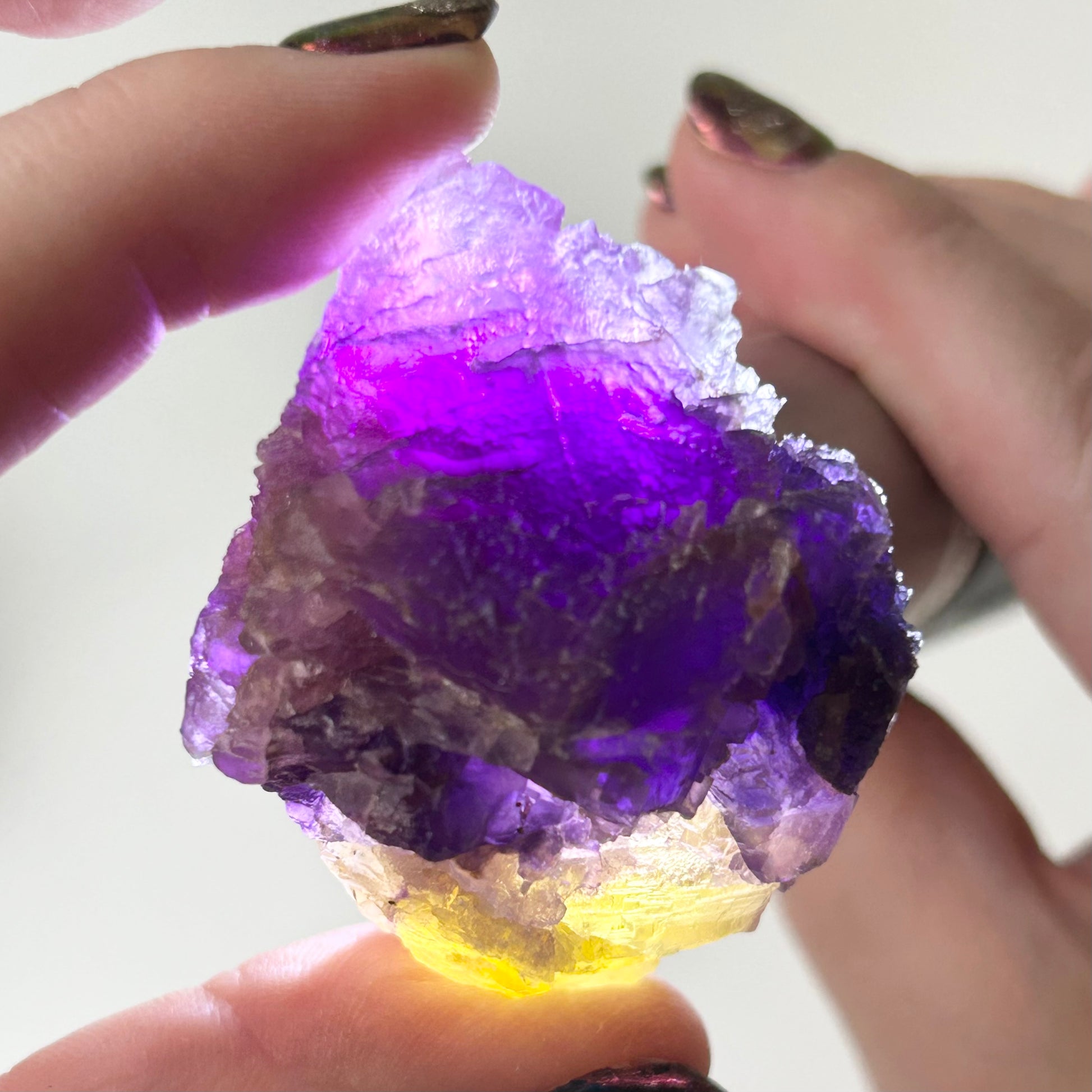 This Blue, Purple & Yellow Fluorite is from the world famous Cave-In-Rock mining area, Illinois, USA 🇺🇸 This Tri colour piece shows the way that after formation Fluorite can dissolve, adding a beautiful and unique pattern to these Fluorites.