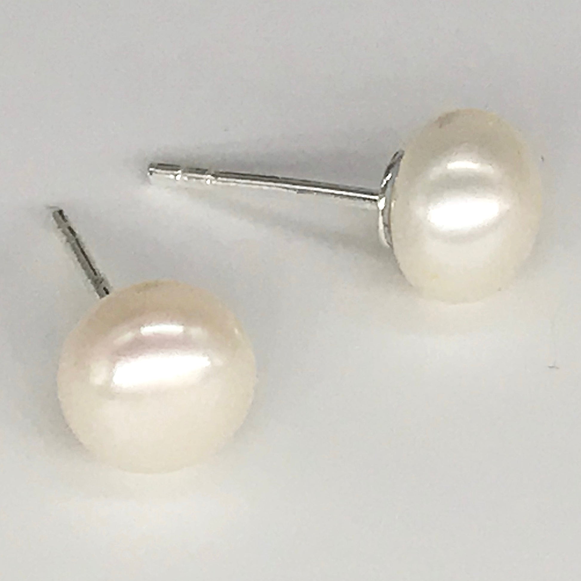 Cream Freshwater Pearl Button Studs’ is a pair of Amethyst 6mm Cream freshwater Button Shaped Pearls and 925 Sterling Silver stud back earrings.