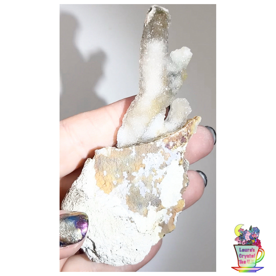 Introducing to Laura’s Crystal Tea U.K. is Fossilised Coral with Botryoidal Agate.