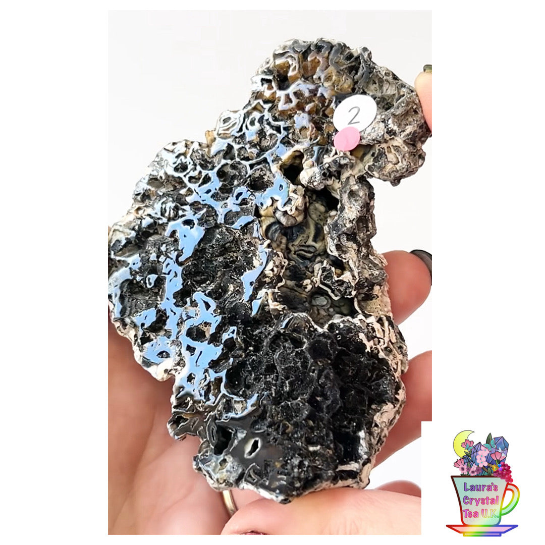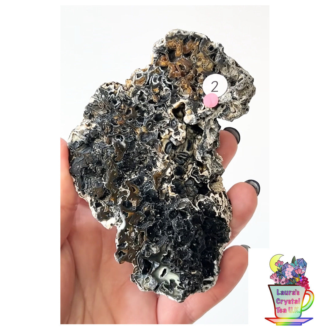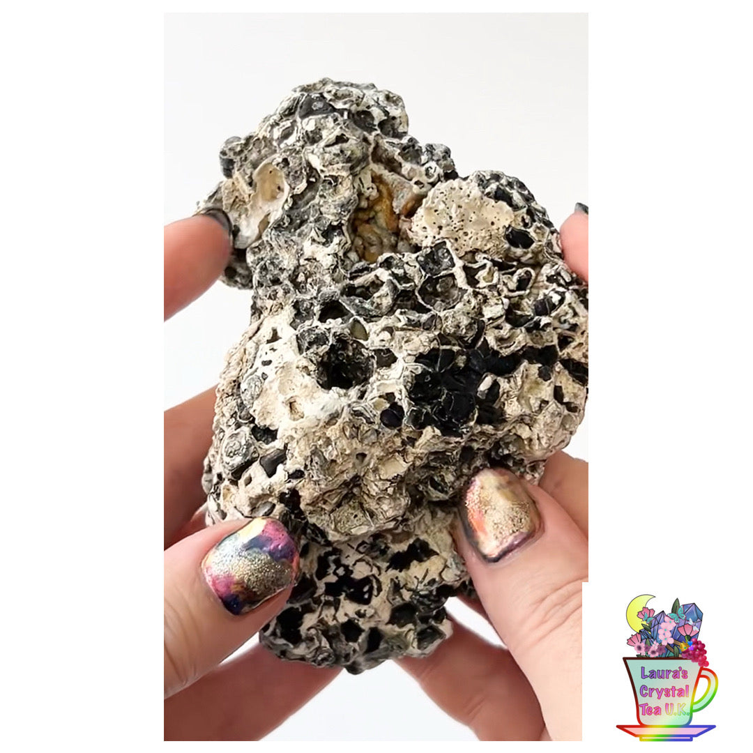 Introducing to Laura’s Crystal Tea U.K. is Fossilised Coral with Botryoidal Agate.