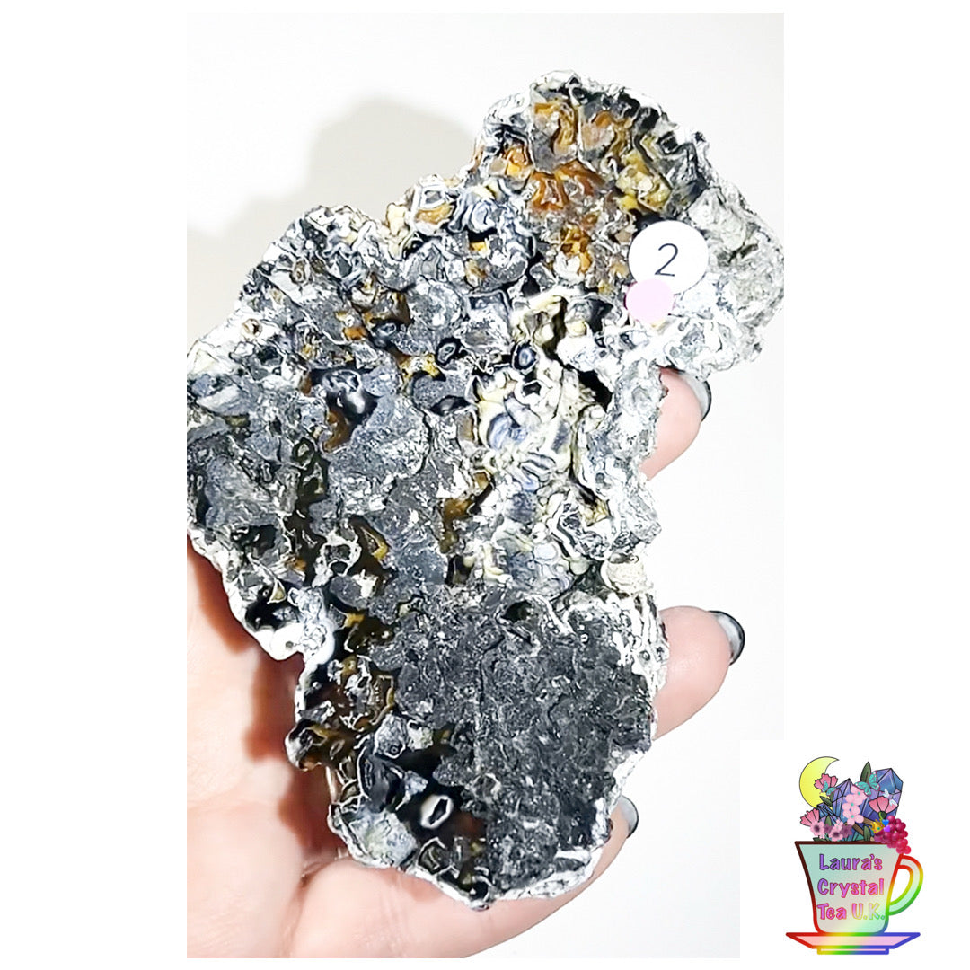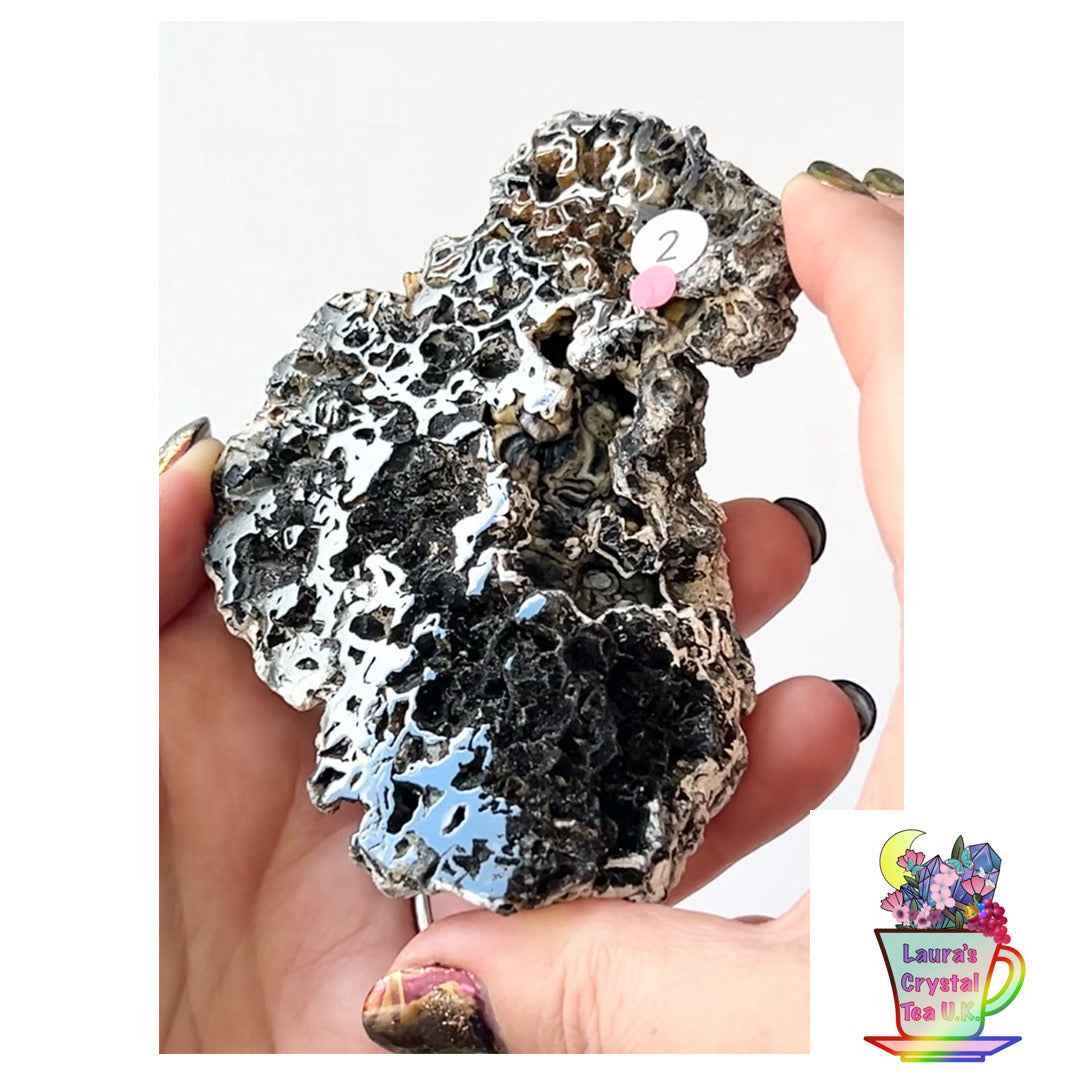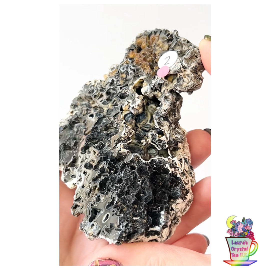 Introducing to Laura’s Crystal Tea U.K. is Fossilised Coral with Botryoidal Agate.