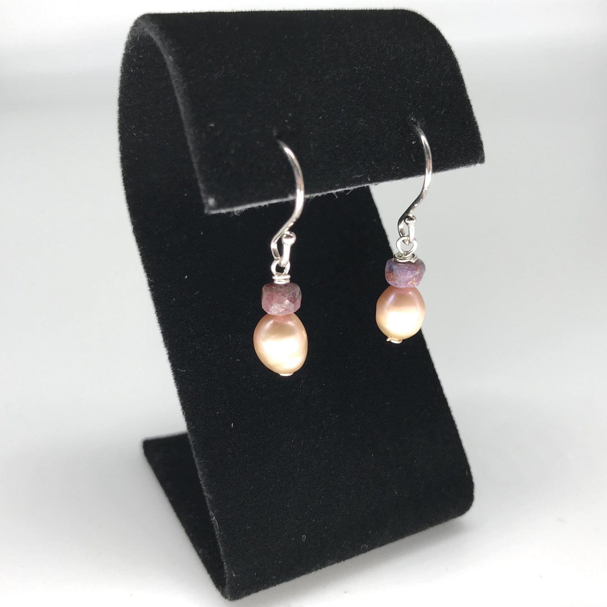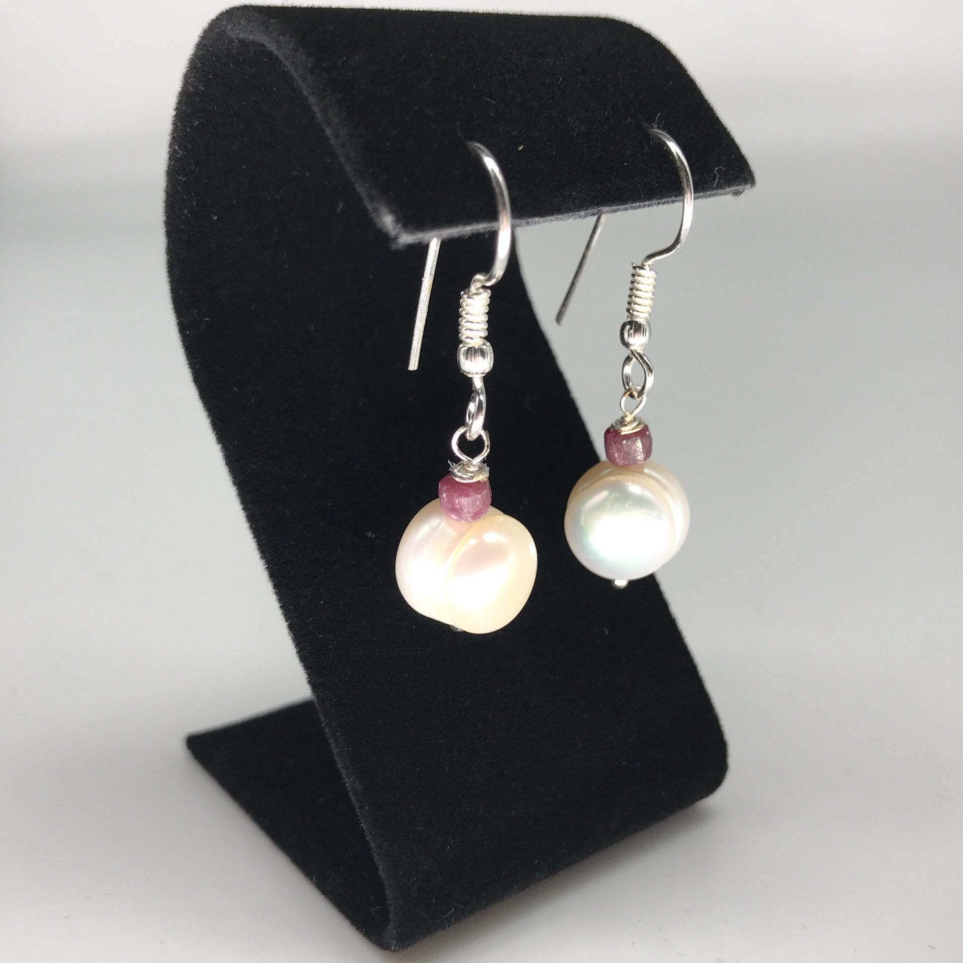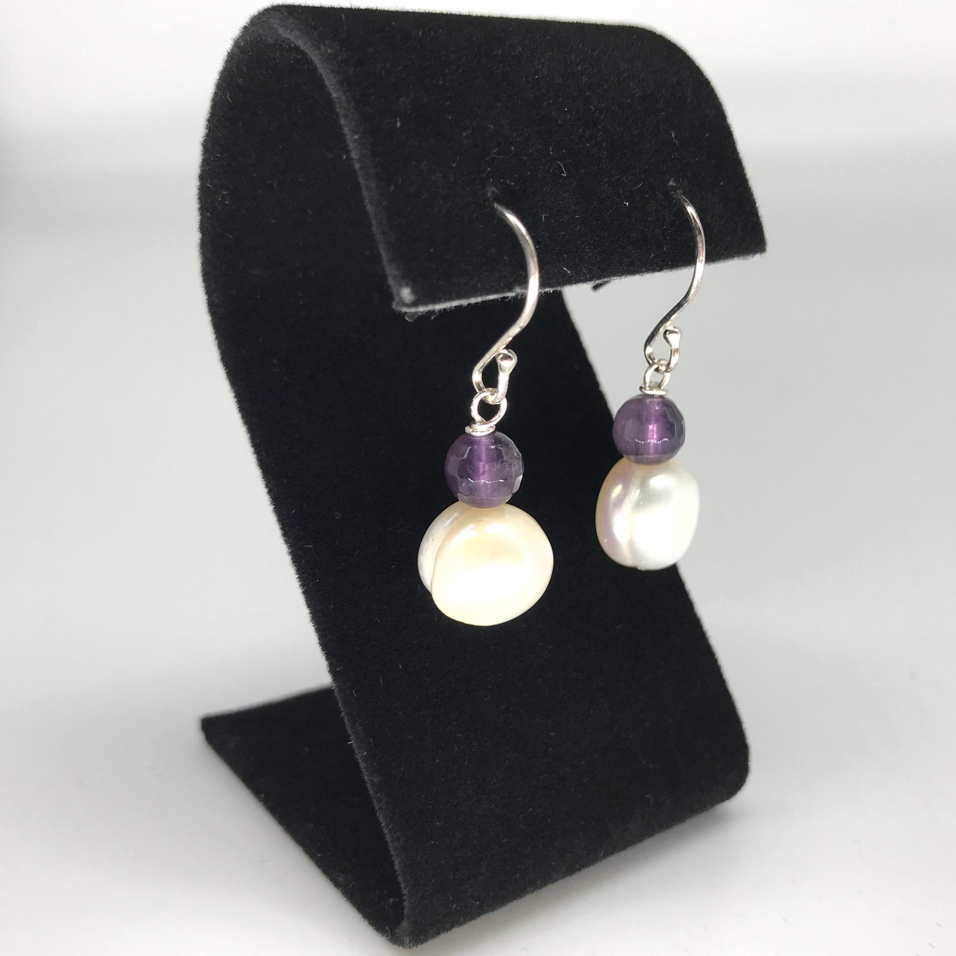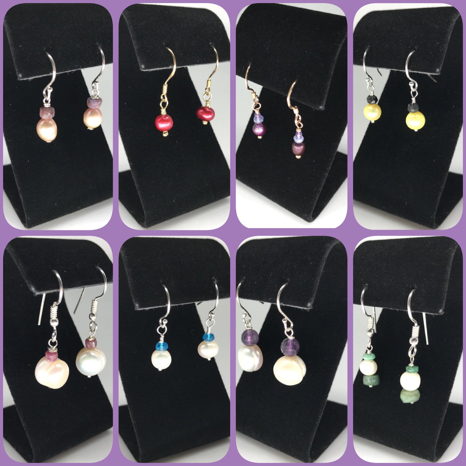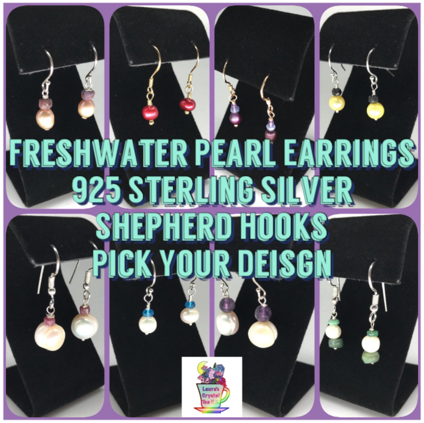 This is a collection of Pearl or Pearl and Gemstone 925 Sterling Silver Shepherds Hook Earrings handmade by me, Laura.