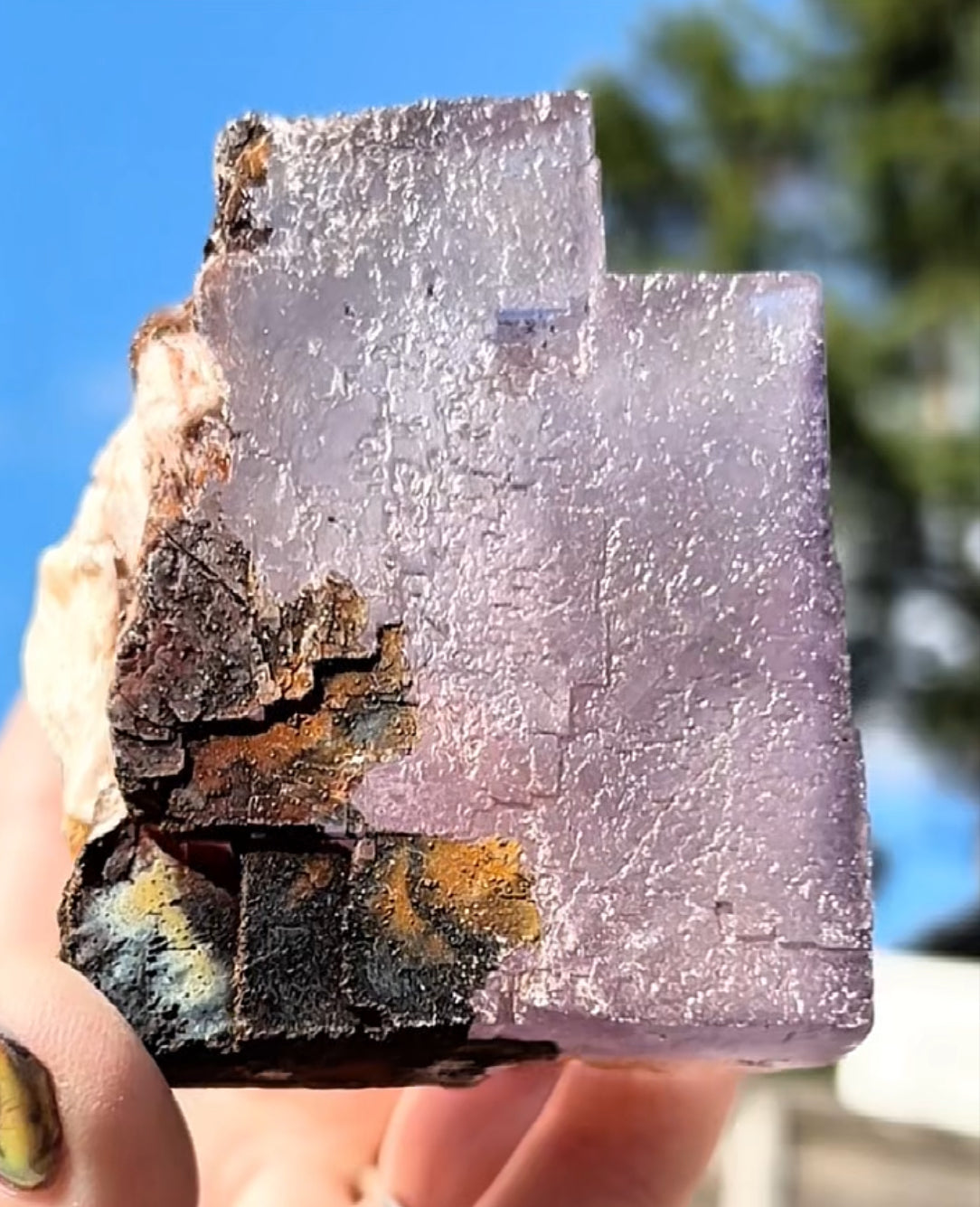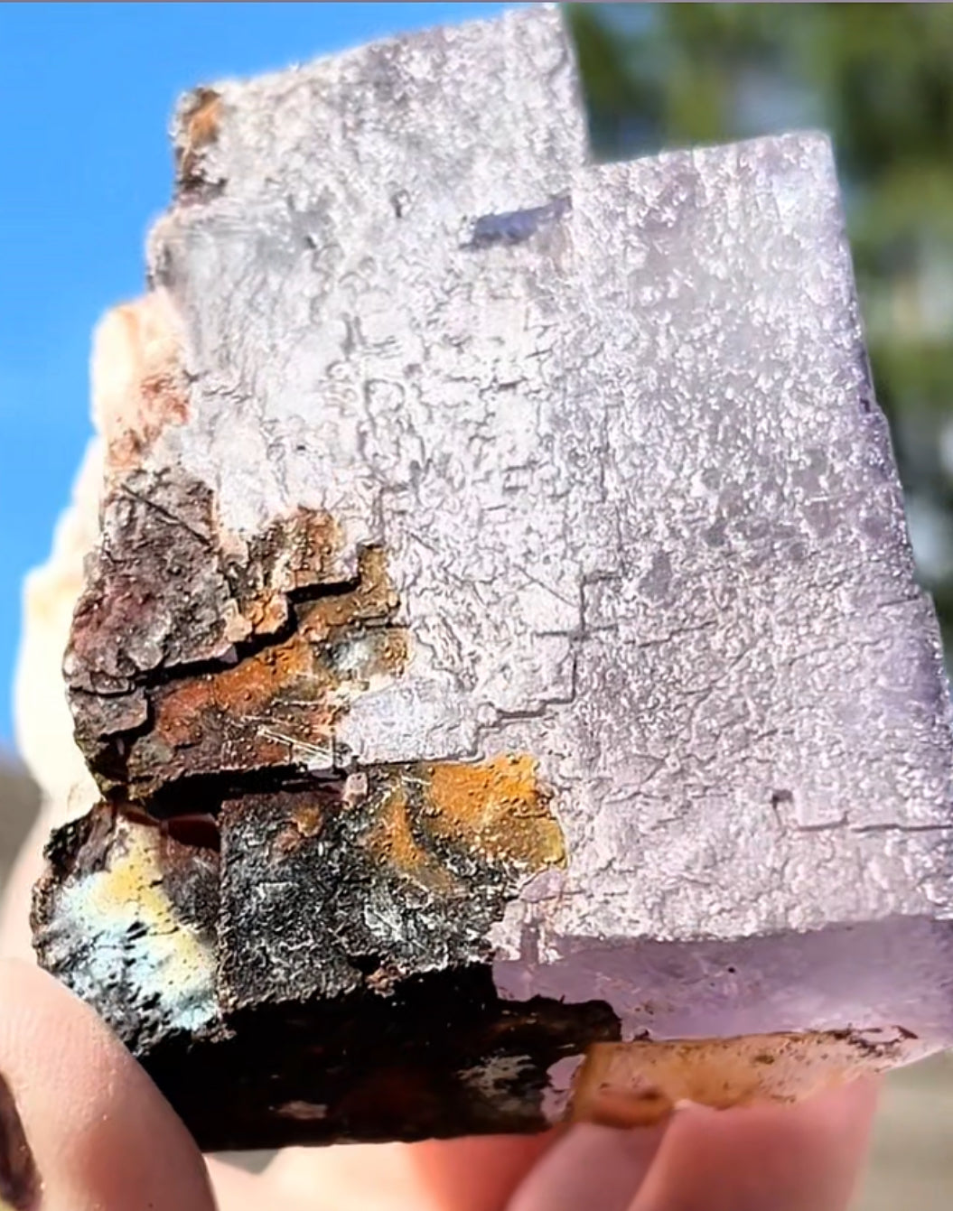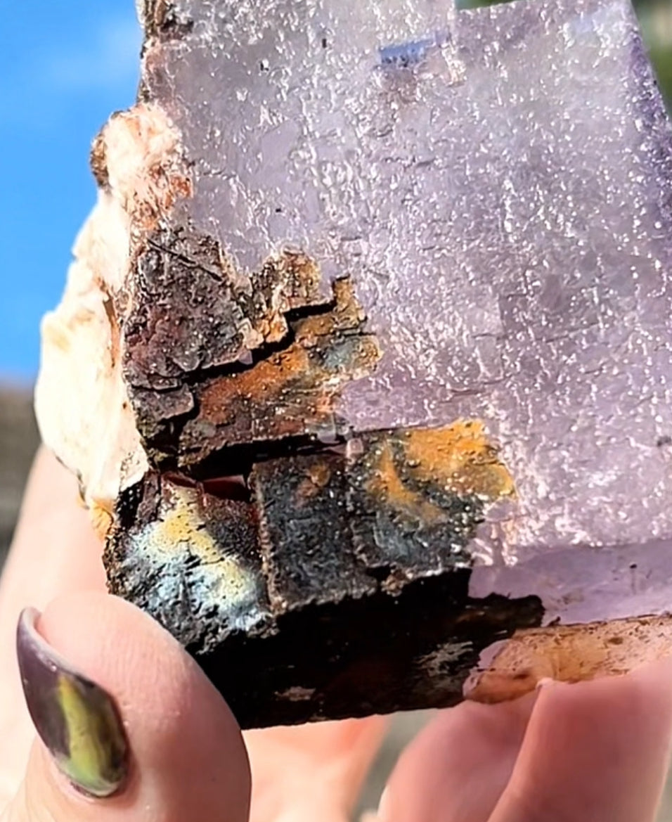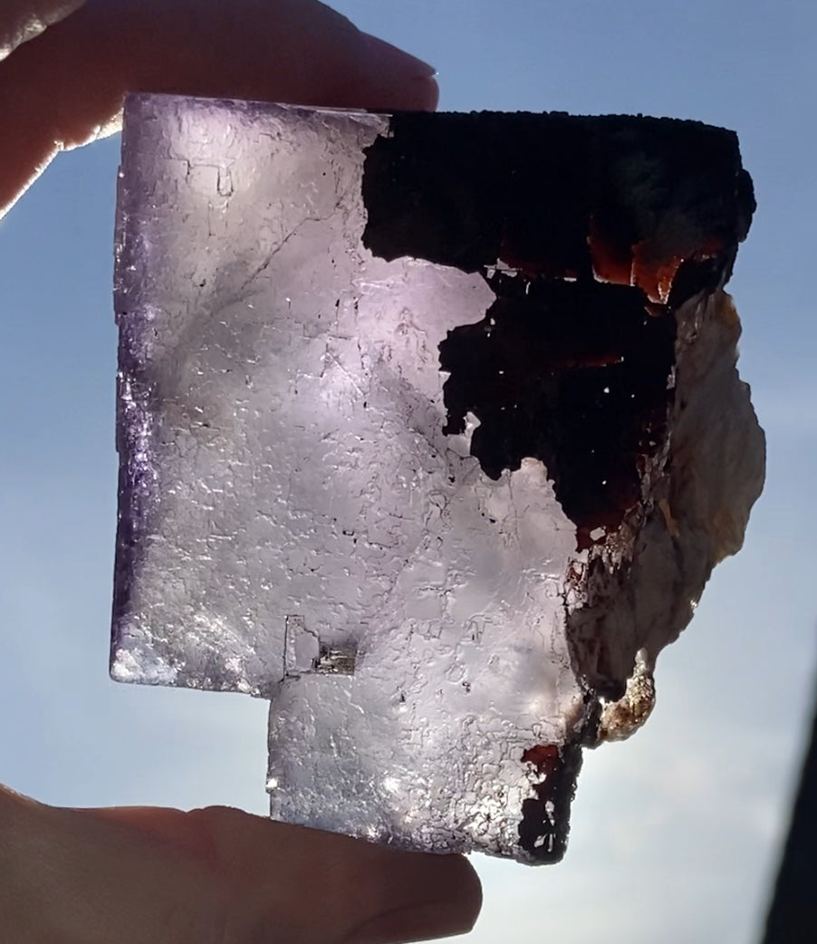 Moroccan Purple Fluorite Large Cube with Iridescent Goethite & Barite from Morocco 🇲🇦