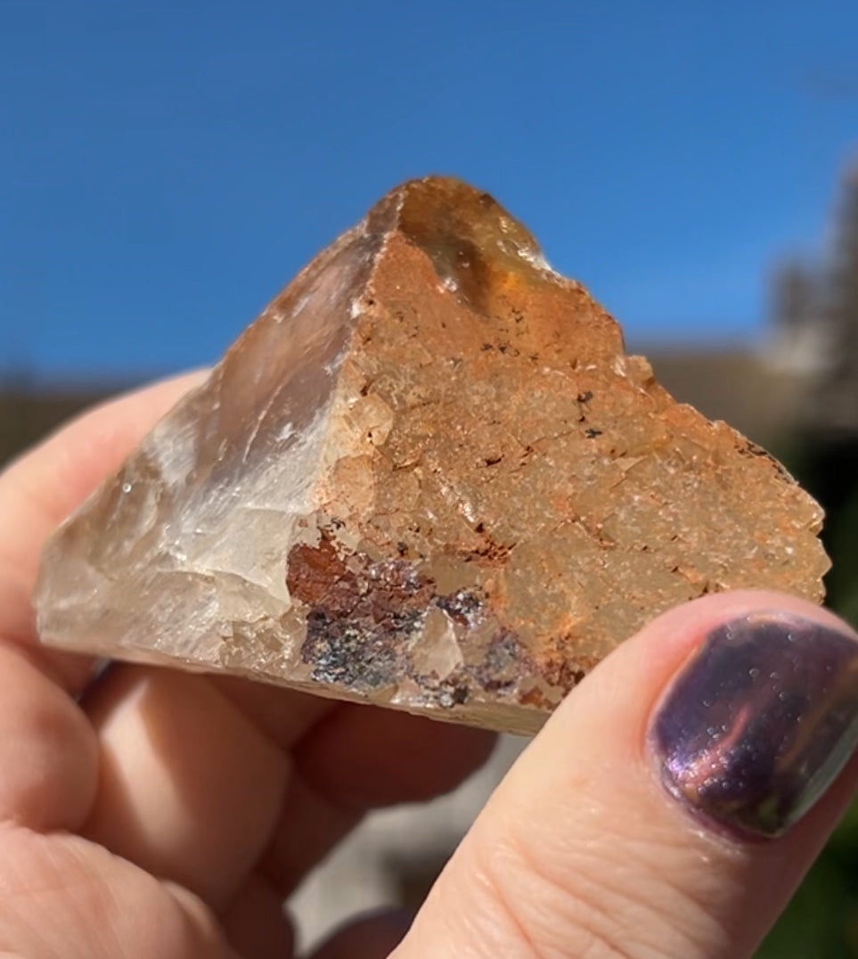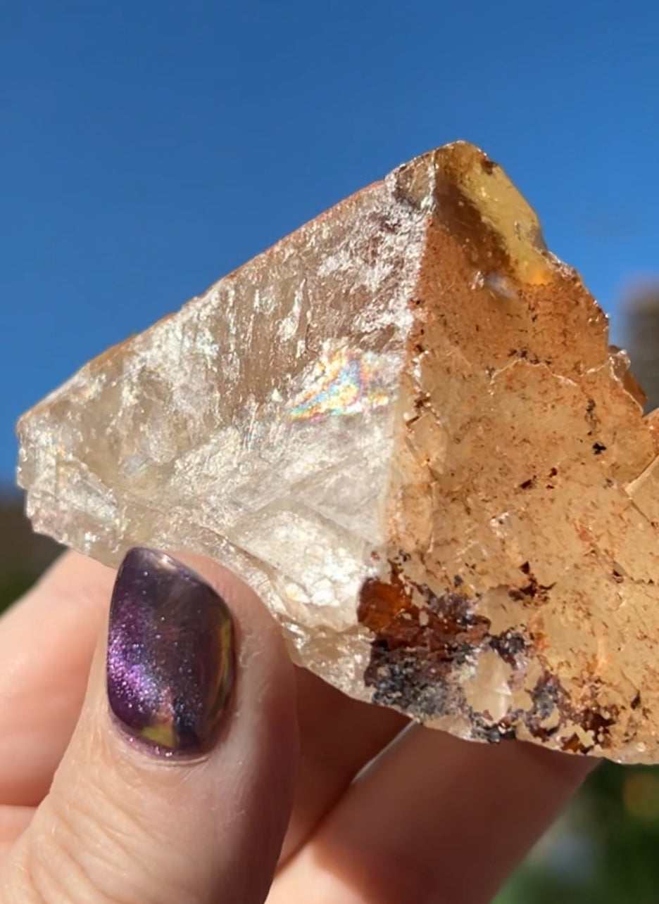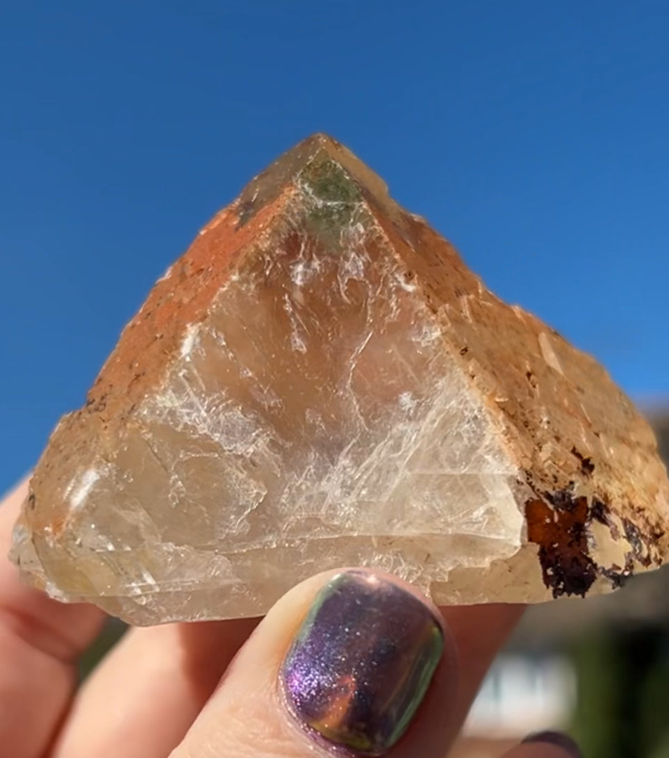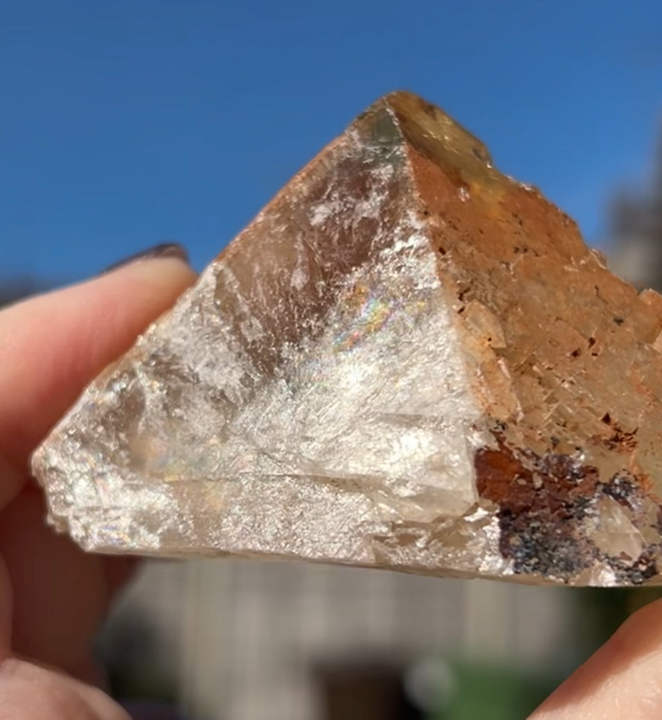 Moroccan Yellow Fluorite with Hematite Iridescence Raw Cleaved Pyriamid from Morocco 🇲🇦