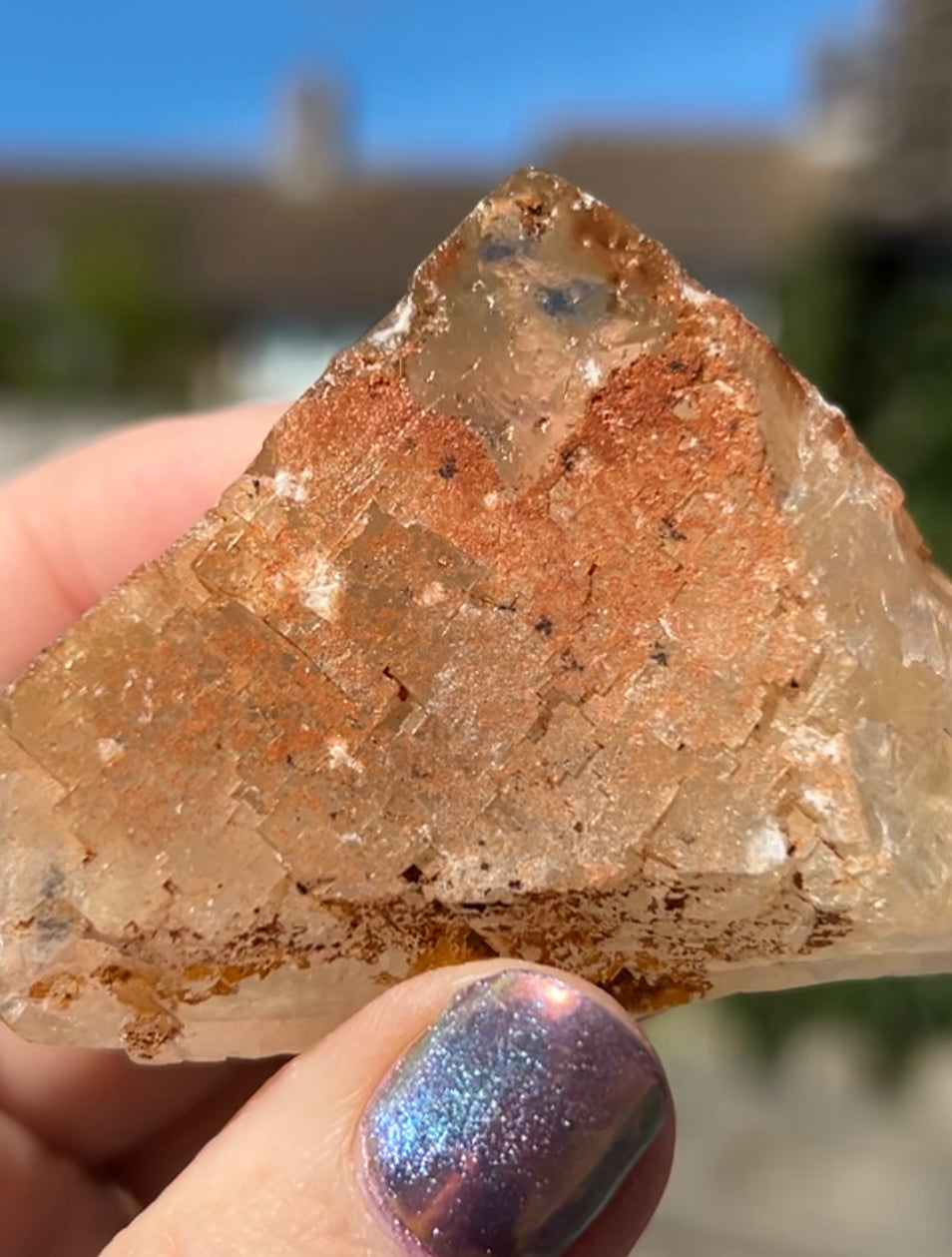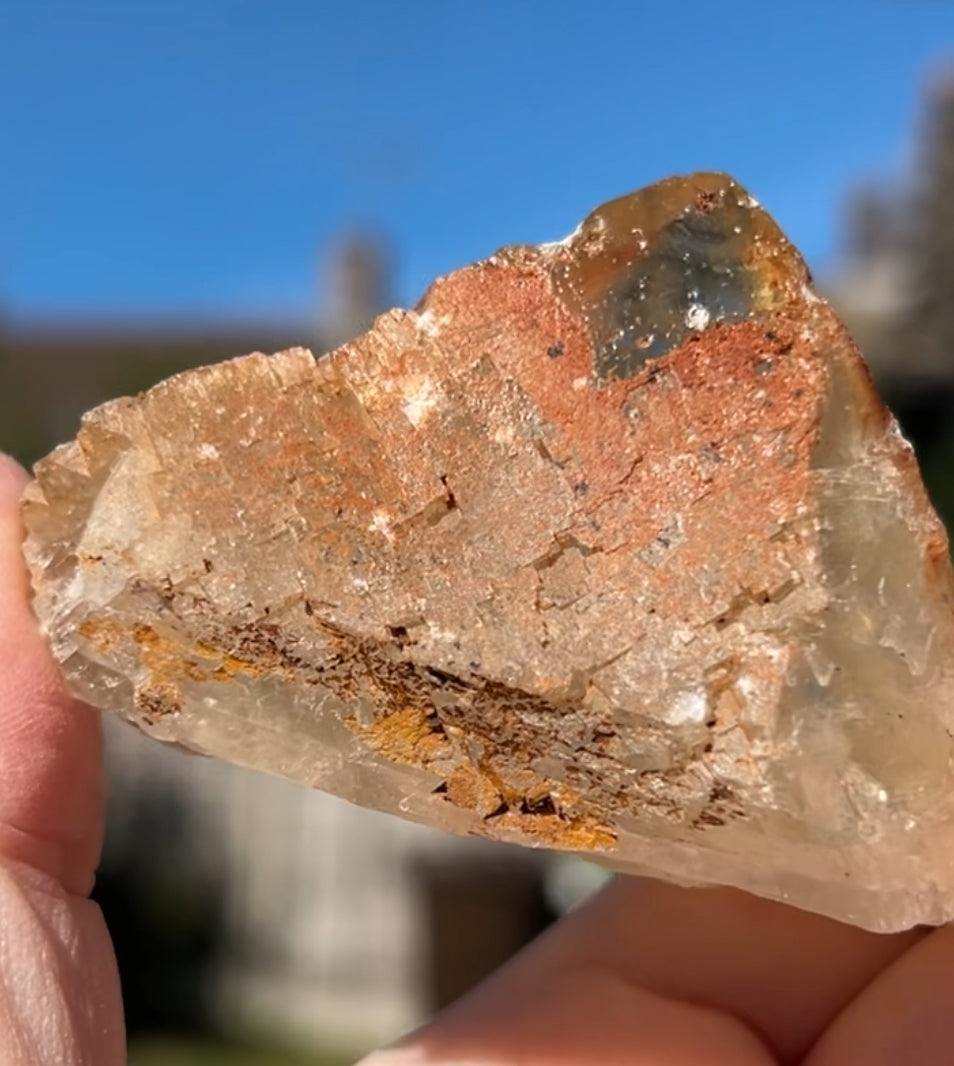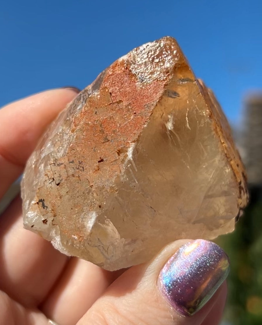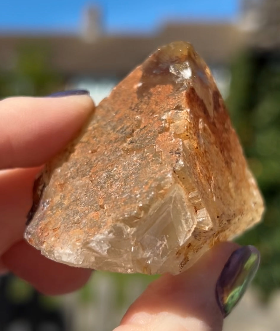 Moroccan Yellow Fluorite with Hematite Iridescence Raw Cleaved Pyriamid from Morocco 🇲🇦