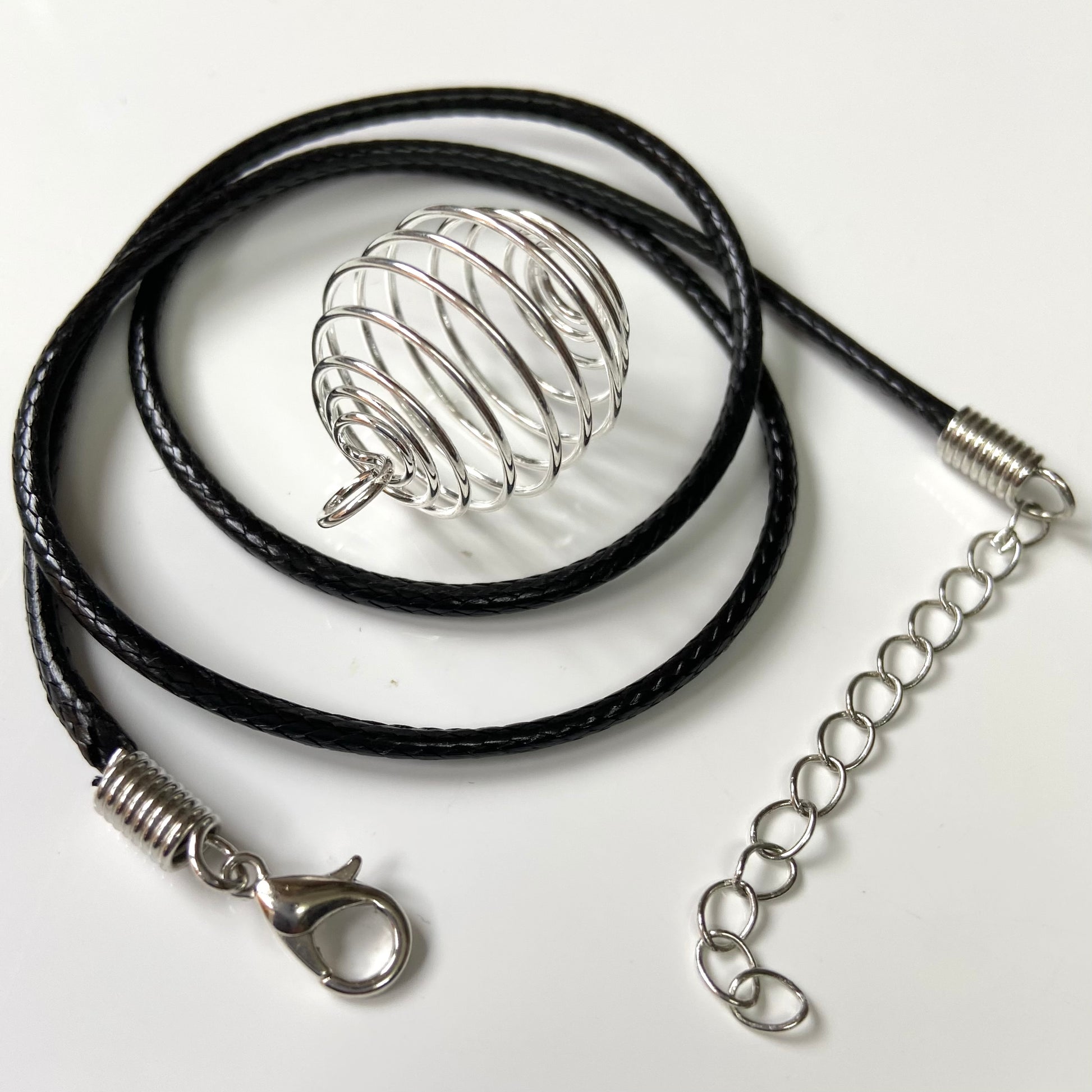This is a small tumble set of 7 with a Silver Tone Spiral 🌀 Cage and Cord Necklace.
