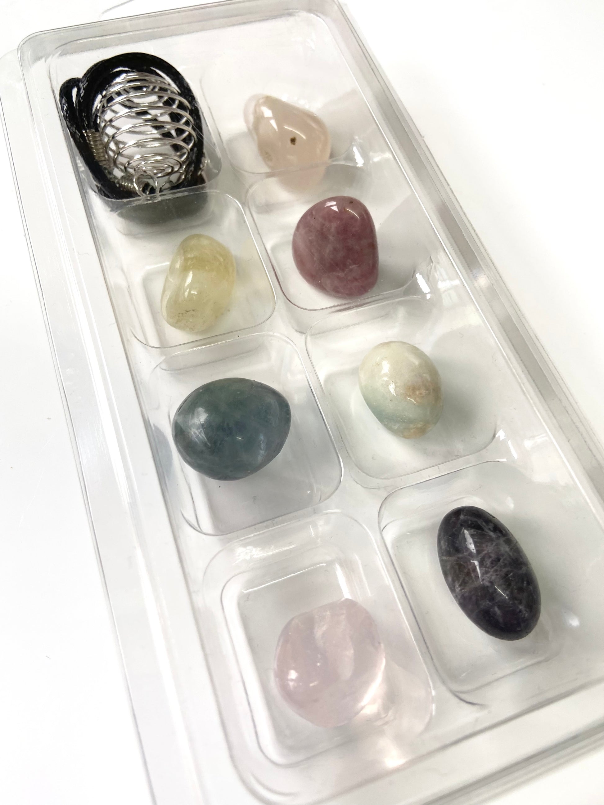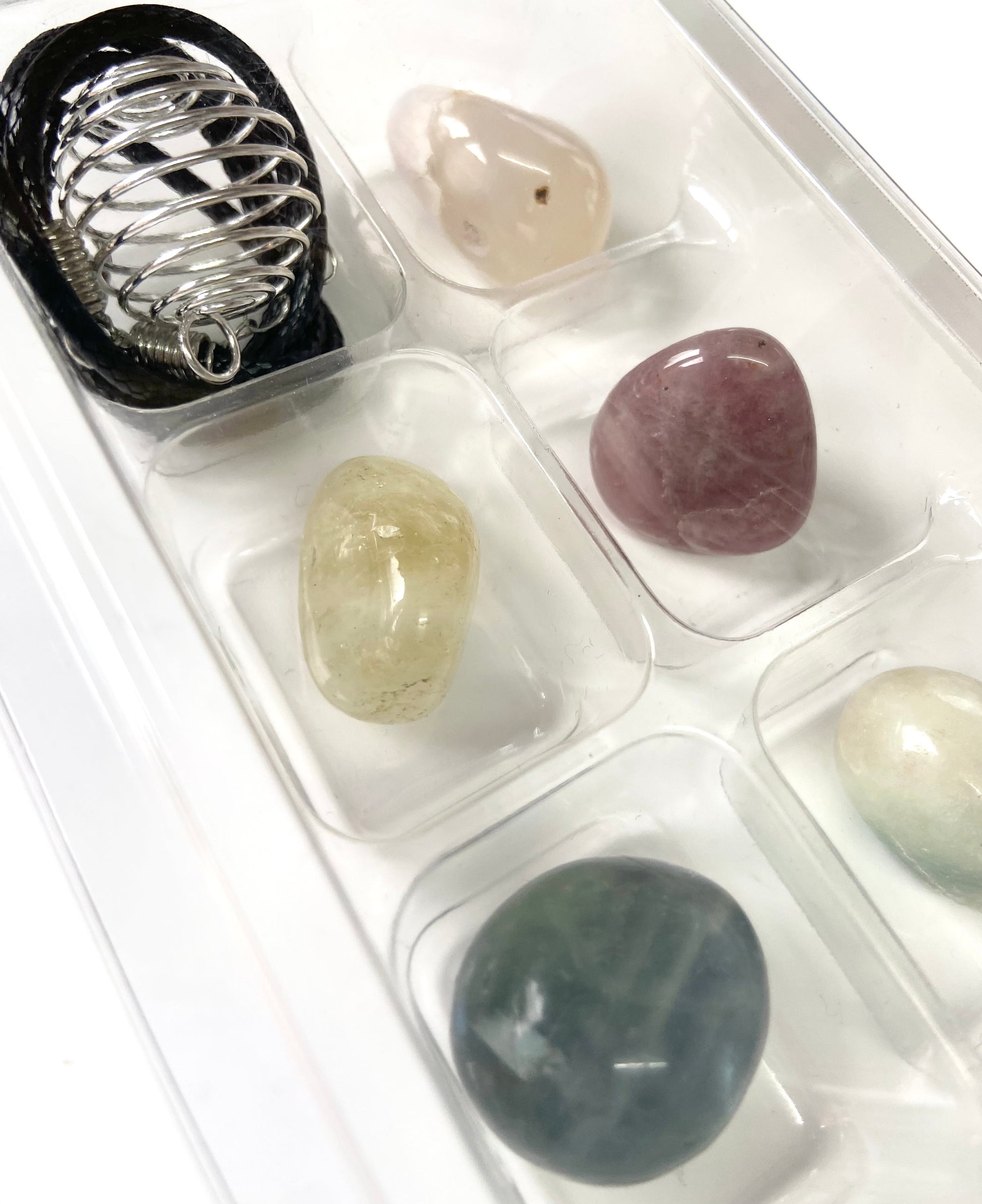 Mystery❓Small Tumble Set of 7 With Silver Tone Spiral 🌀 Cage & Cord Necklace