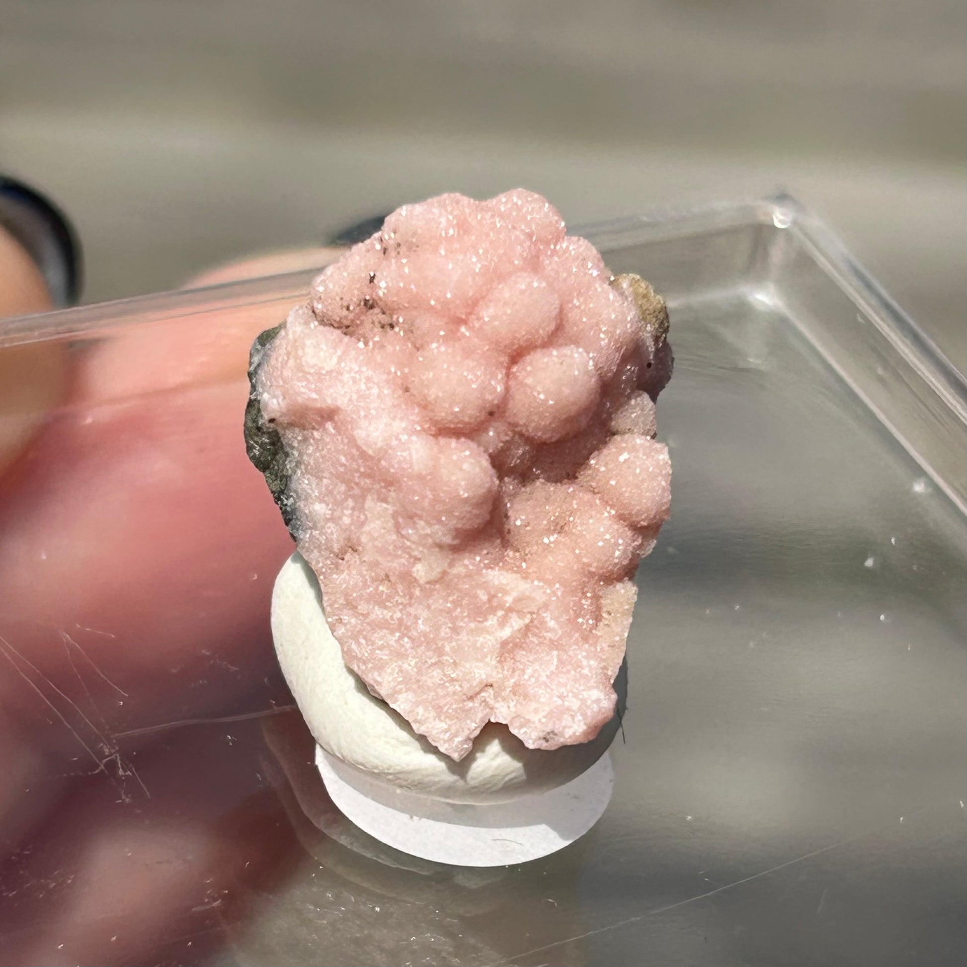 This specimen has Botryoidal Pink Rhodochrosite bubbles all over. This is a true collectors piece is supplied in a specimen box with information card.