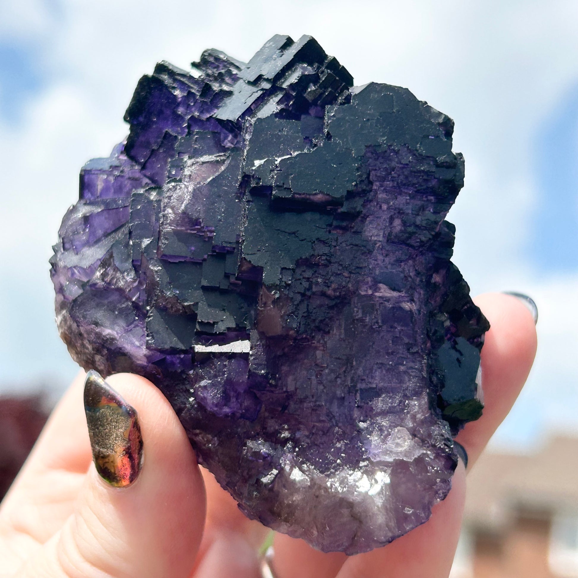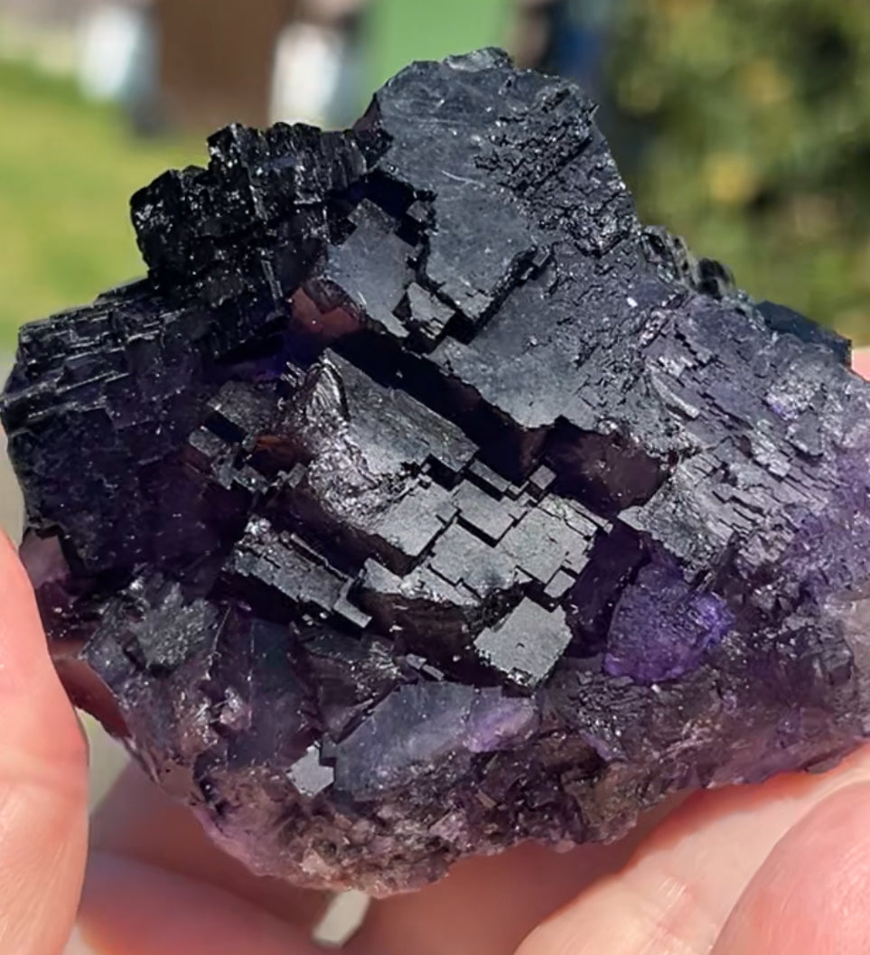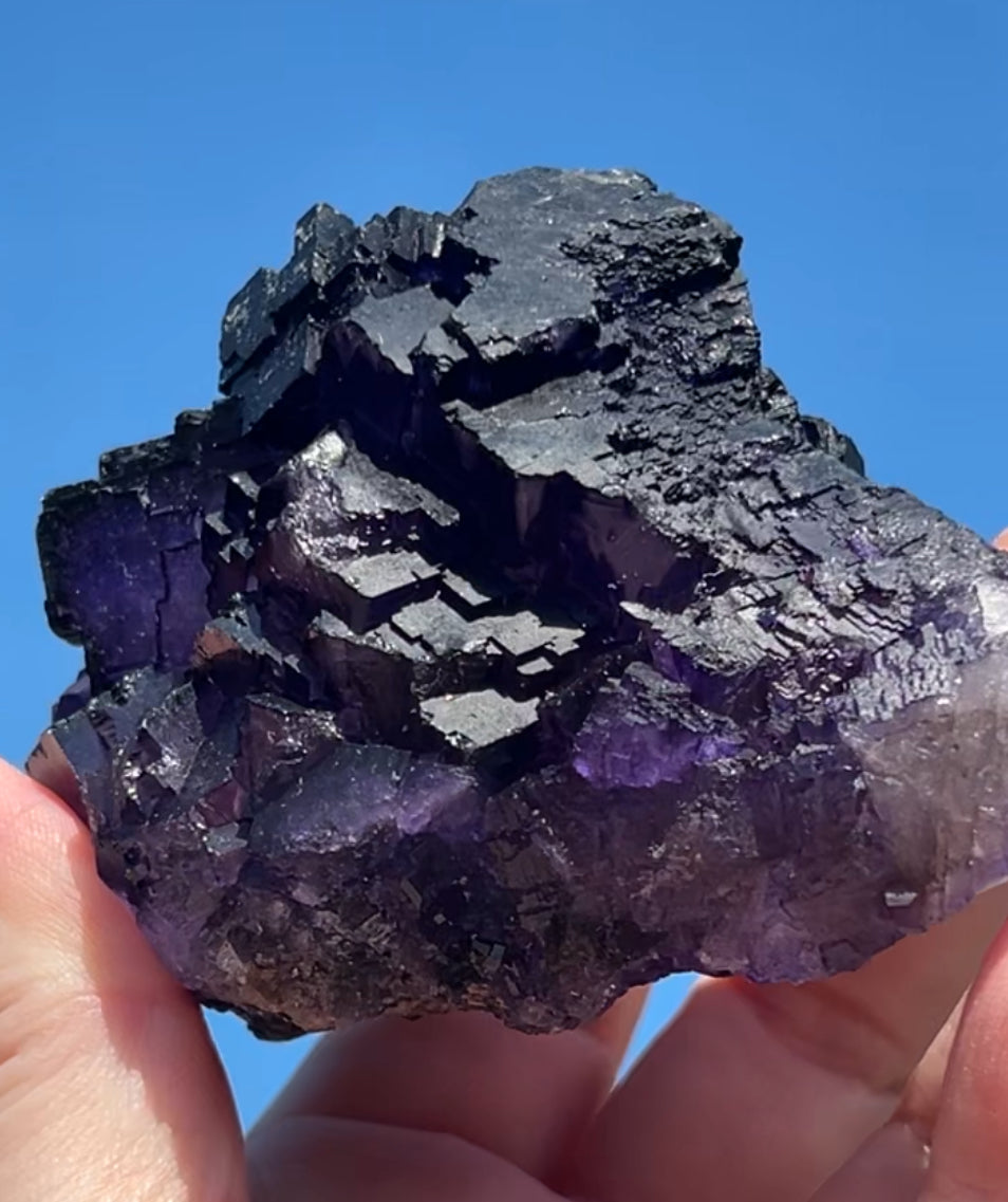 These truly beautiful Fluorites are from the La Encantada Mine, which is located next to the Tule Mine. They are white fluorite with a covering of deep purple on top. These specimens have an amazing appearance with the dark purple/ blue edge zoning shows as you turn it to the right angle.