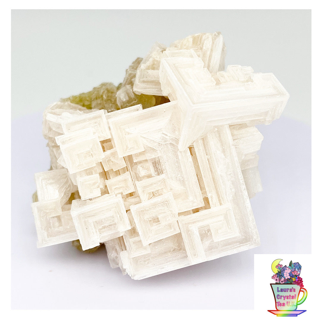 The Halite specimens in our stock at Laura’s Crystal Tea U.K. also have present the mineral called Trona. Trona is a grey mineral which occurs as an evaporite in salt deposits and consists of a hydrated carbonate and bicarbonate of sodium. The Green Trona in our specimens is also created in this colour from the dead algae mixed into the Trona from the lake beds.