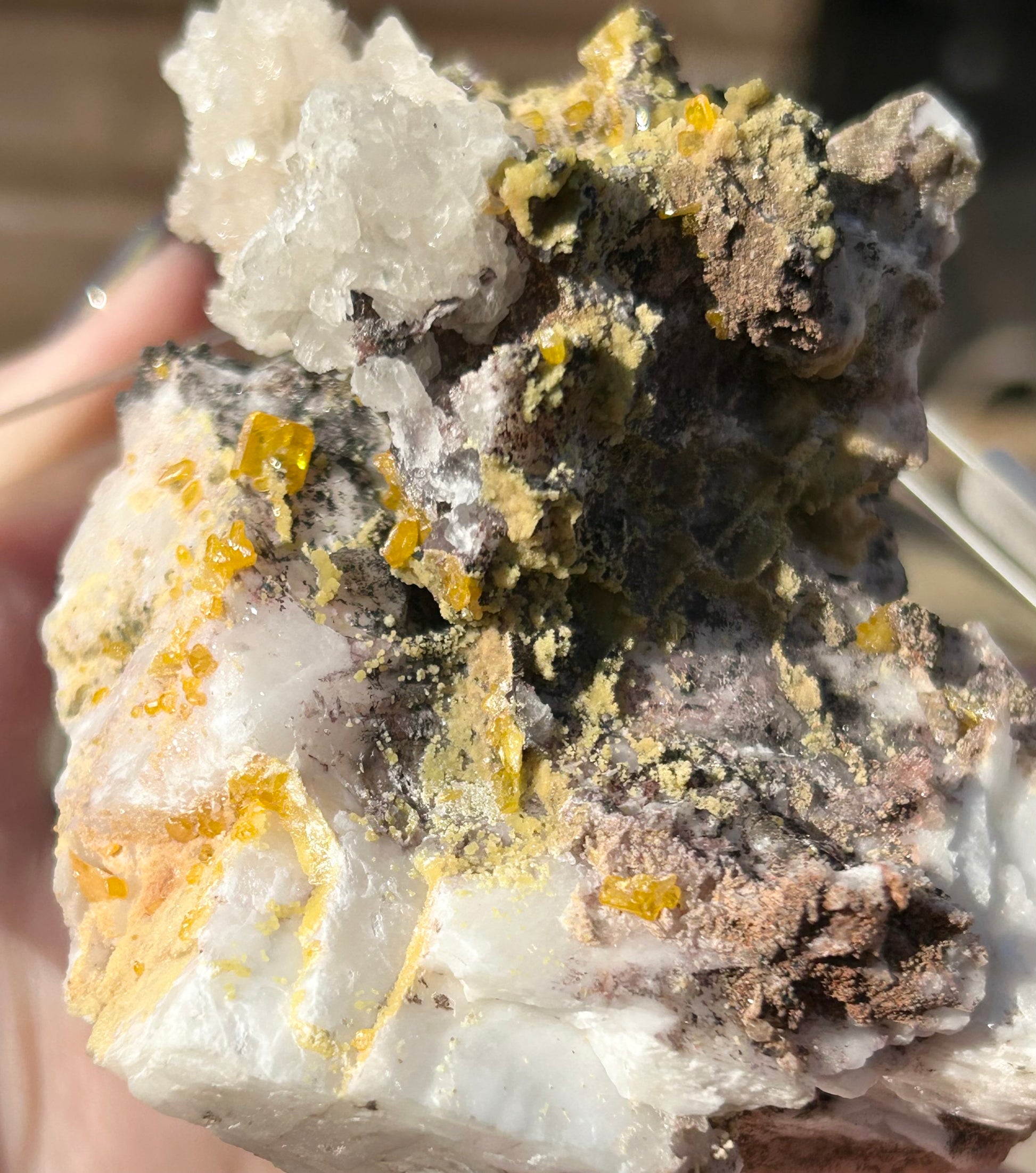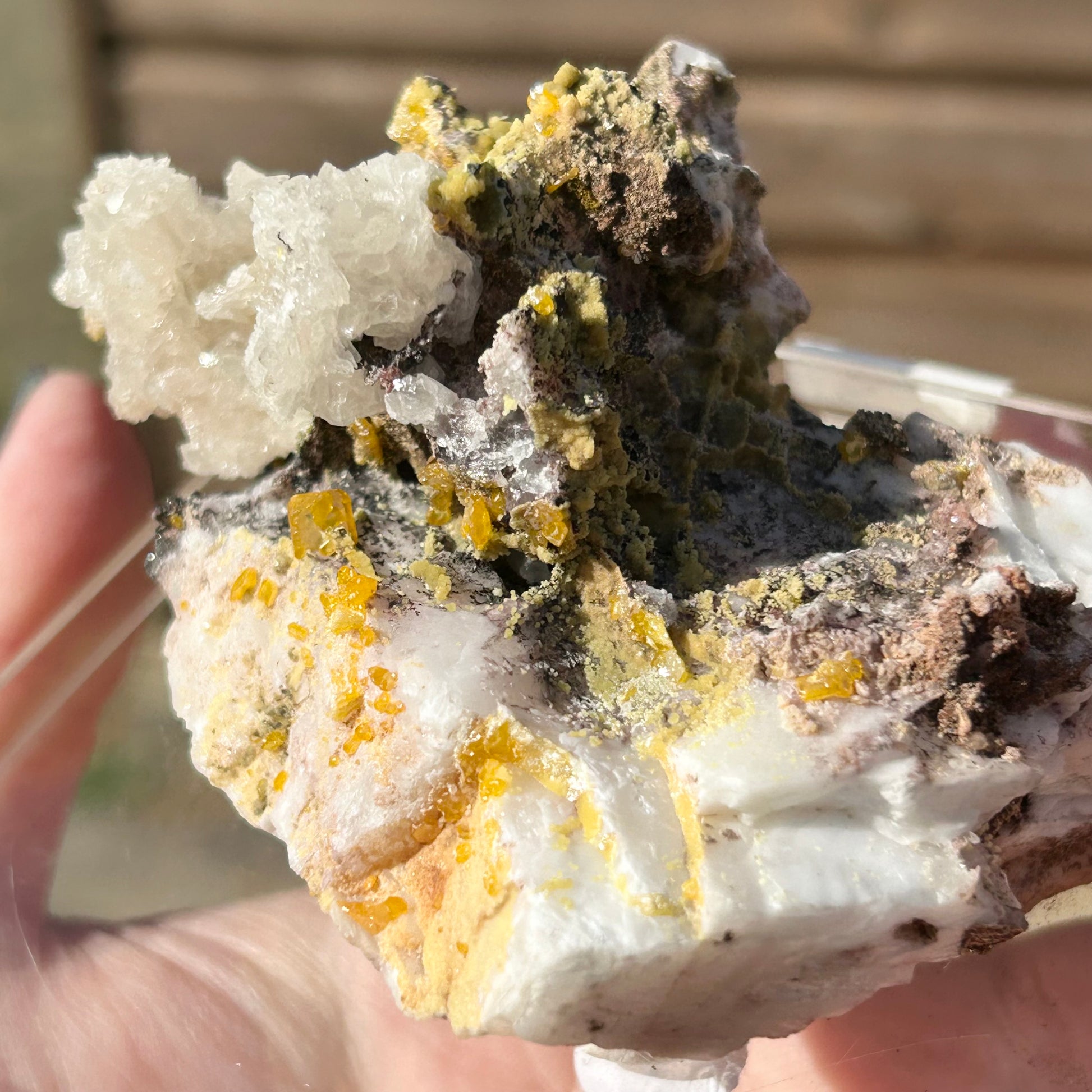 Yellow Wulfenite with Mimetite on Calcite & Feldspar XL from La Morta Mine, Chihuahua, Mexico 🇲🇽 #6